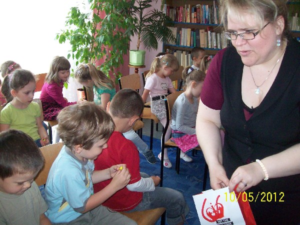 Spotkanie w bibliotece dziecięcej z poetką Barbarą Chomko w cyklu comiesięcznych spotkań- „ Czwartkowe poranki z bajką”.