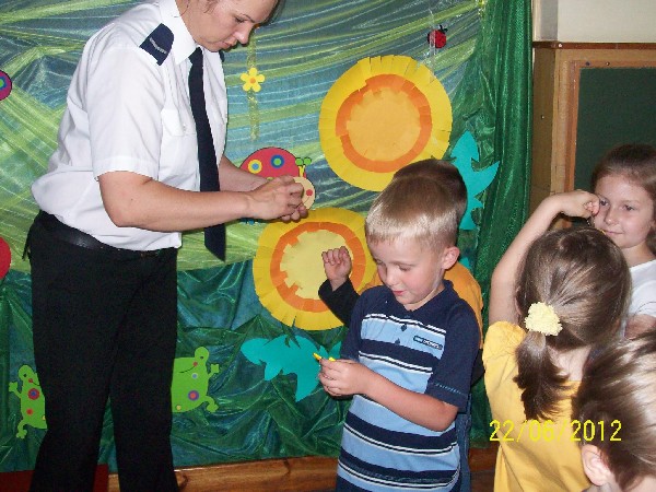 FUNKCJONARIUSZE SOKÓLSKIEJ POLICJI Z WIZYTĄ W PRZEDSZKOLU