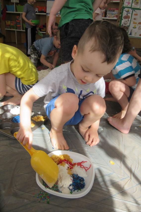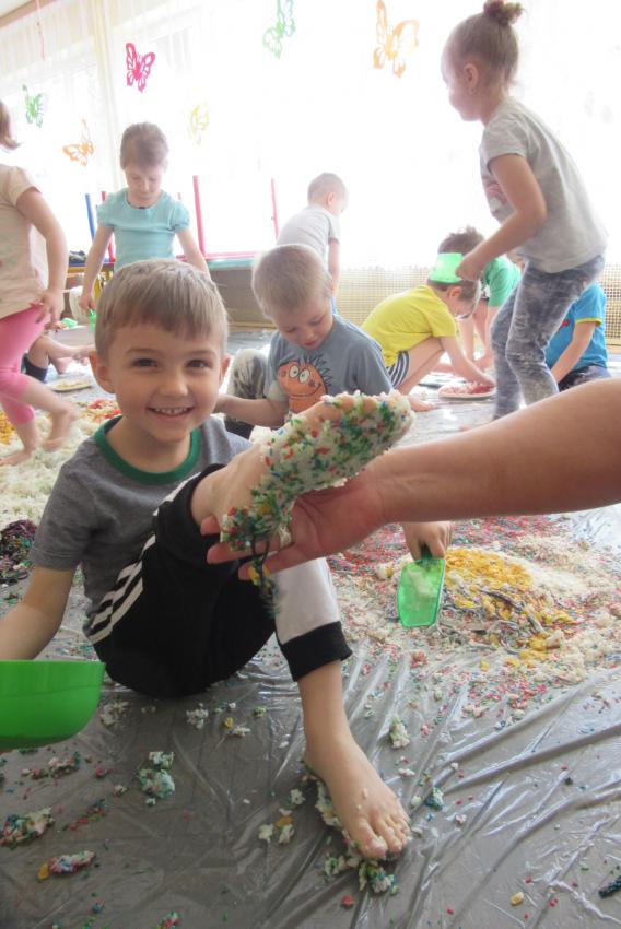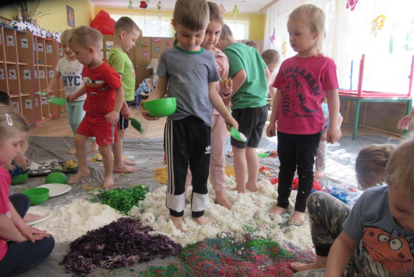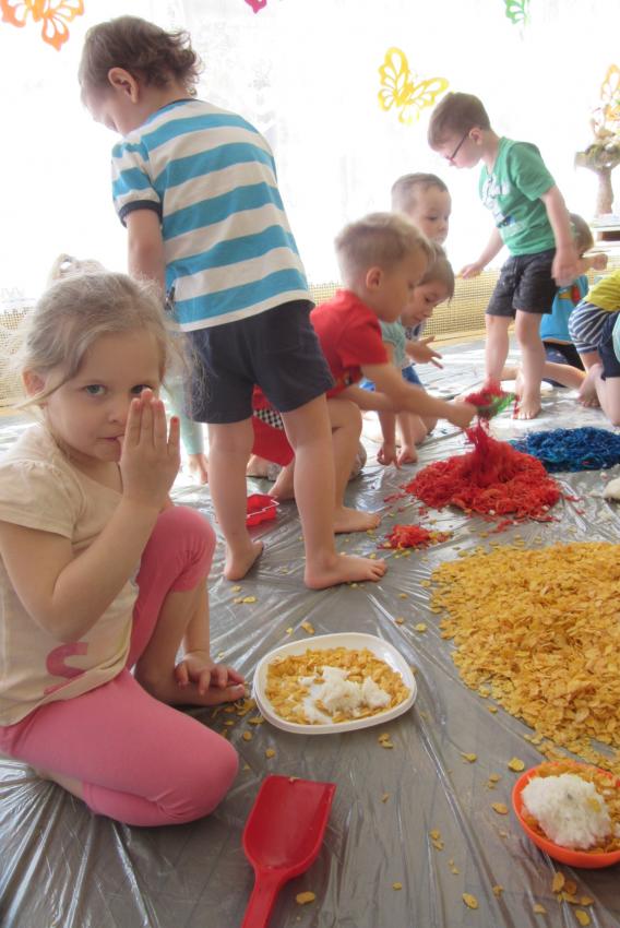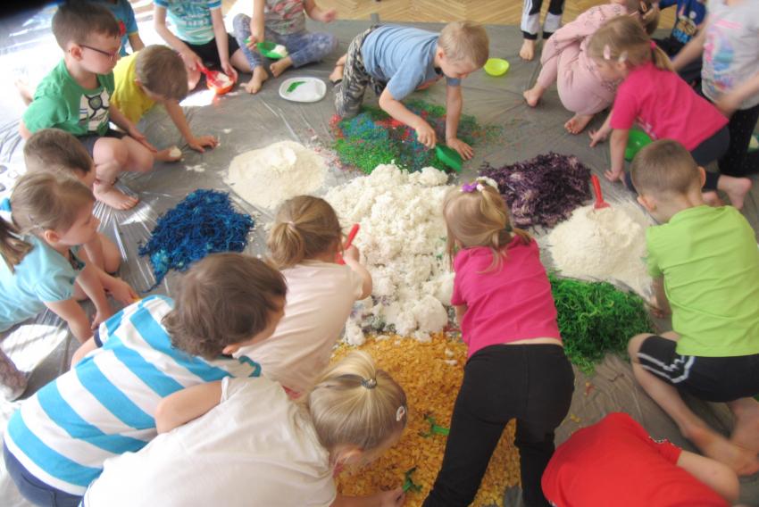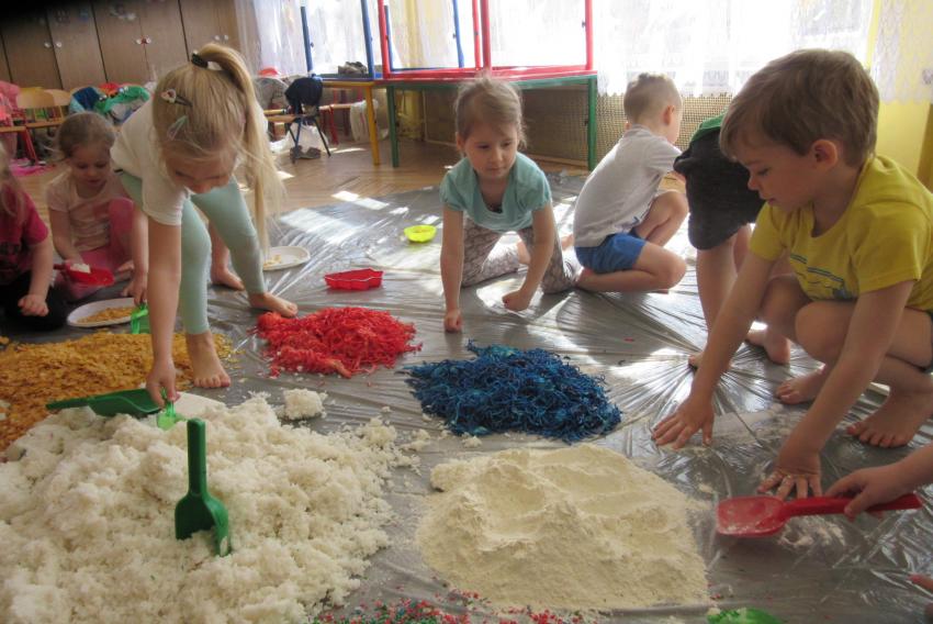 SENSOPLASTYKA W ZACZAROWANYCH PACYNKACH - ZABAWA KOLOROWĄ RYŻOLINĄ