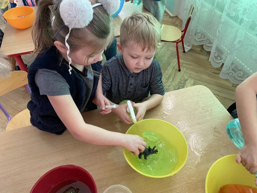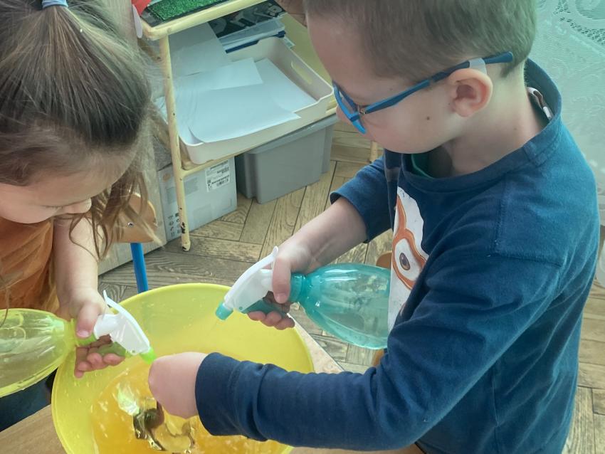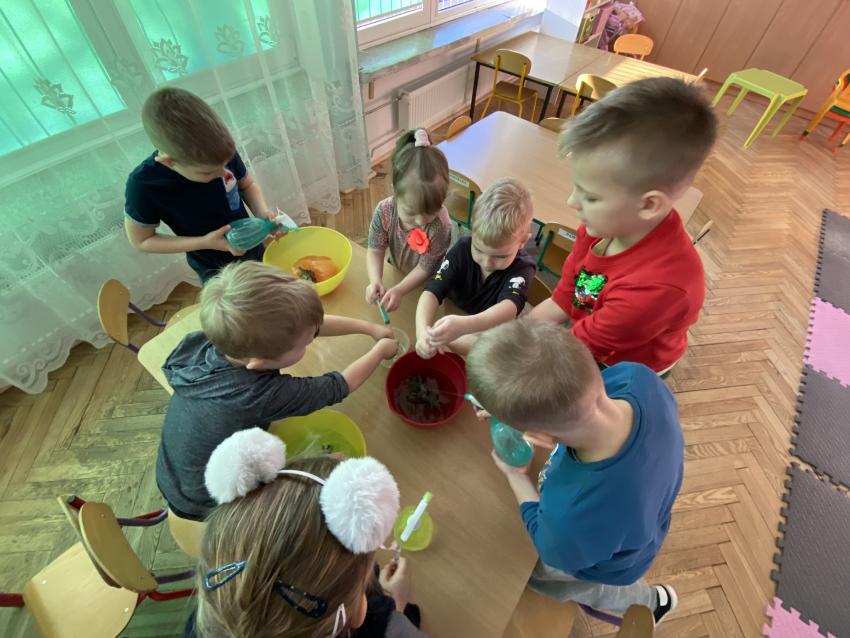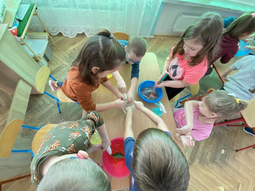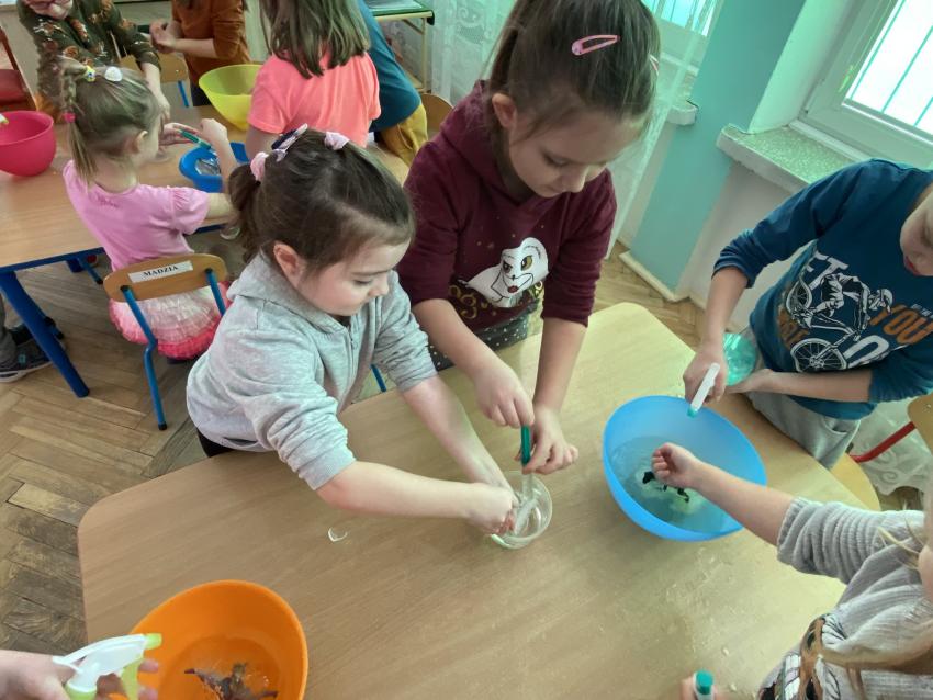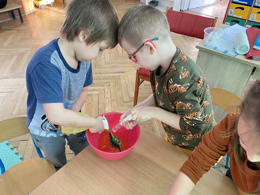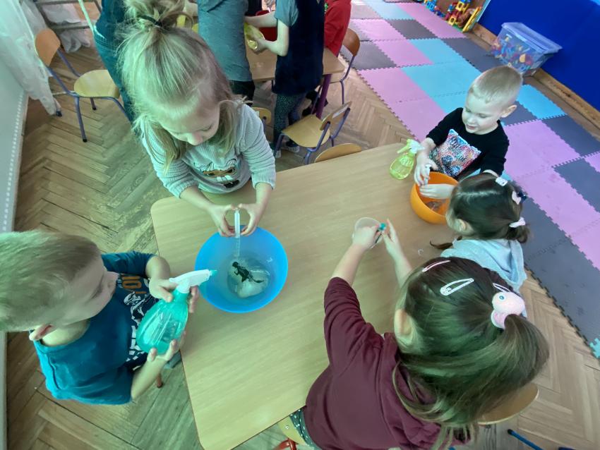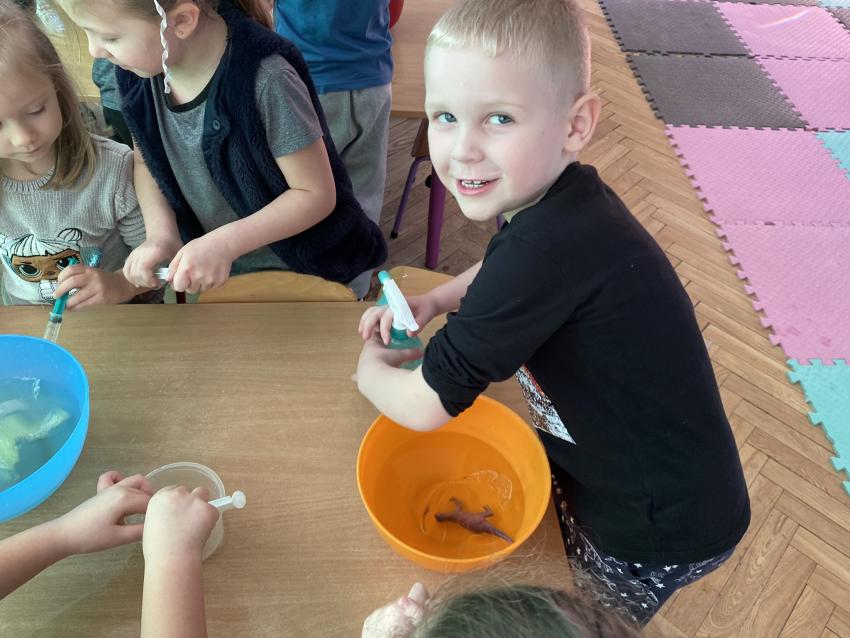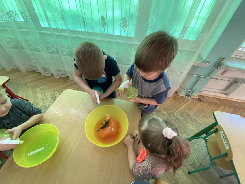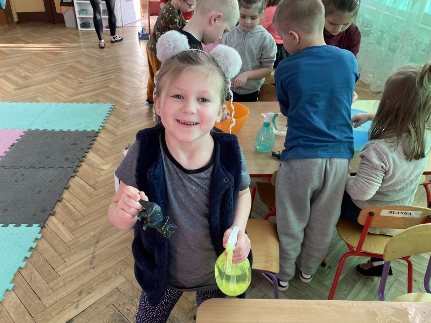 ZABAWY Z DINOZAURAMI W GRUPIE KOLOROWYCH AKWARELKACH