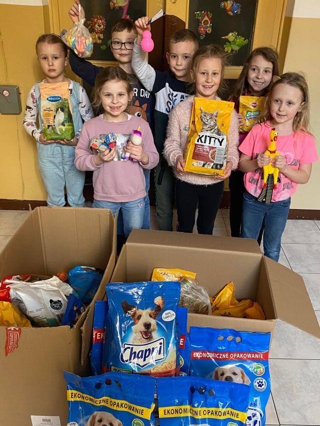 "Przedszkolny Klub Wolontariusza „Małe-wielkie Serce” w ramach realizacji projektu „Wyzwanie Teodora” w Przedszkolu nr 1 w Sokółce zorganizował zbiórkę dla Schroniska Zwierząt w Sokółce. Dzieci wraz z Rodzicami bardzo zaangażowały się w pomoc bezdomnym, porzuconym zwierzętom. Hojność Rodziców przeszła wszelkie oczekiwania. Udało się zebrać dużą ilość potrzebnych artykułów, od karmy po zabawki dla zwierząt. Serdecznie dziękujemy wszystkim przedszkolakom i ich Rodzicom za olbrzymie serce i chęć niesienia bezinteresownej pomocy. Dzięki wspólnemu zaangażowaniu dzieci zdobyły odznakę Wyzwania Teodora – pomocna dłoń."