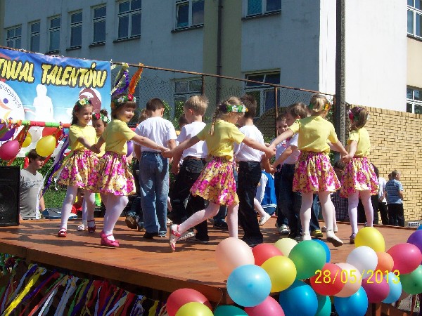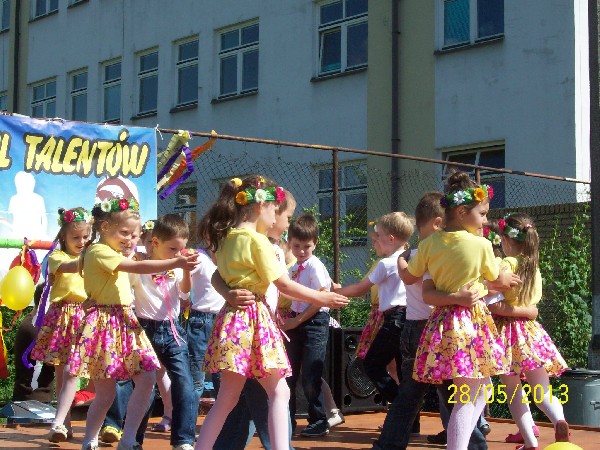 W środę (29. 05.2013) dzieci z koła tanecznego „Wesołe nutki” działającego w naszym przedszkolu zaprezentowały swoje umiejętności podczas IV PRZEGLĄDU TALENTÓW, którego organizatorem był Zespół Szkół Integracyjnych nr 2 w Sokółce. Dzieci wystąpiły na scenie pierwsze i bezbłędnie zatańczyły układ taneczny do piosenki pt. „Czerwone jabłuszko”.