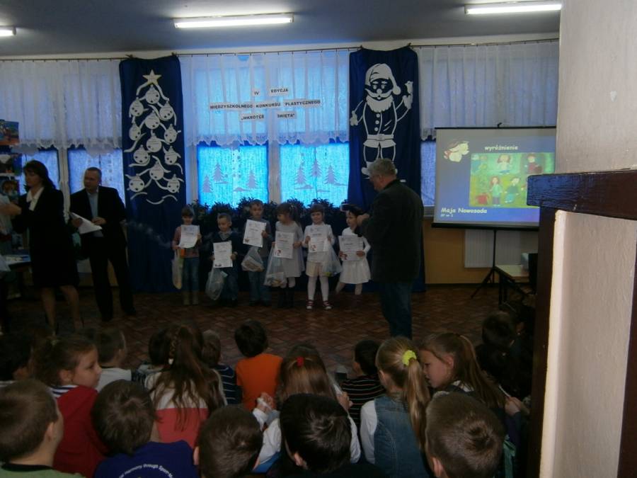 W czwartek 12.12.2013 r. Amelka Jurgiel z grupy „Tęczowe kredki” odebrała nagrodę oraz dyplom za wyróżnienie w konkursie „Wkrótce święta” organizowanym przez Zespół Szkół Ogólnokształcących w Sokółce - jesteśmy z niej bardzo dumni, ponieważ to ogromne osiągnięcie. Wszystkie prace wykonane przez naszych przedszkolaków były wyjątkowe i również zostały nagrodzone słodkimi upominkami.