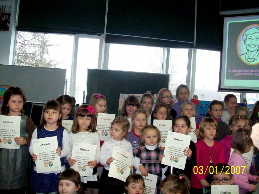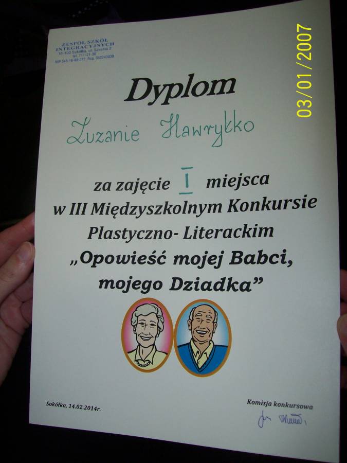 W dniu 14 lutego 2014r. w Zespole Szkół Integracyjnych rozstrzygnięto trzecią edycję Międzyszkolnego Konkursu Plastyczno-Literackiego "Opowieść mojej Babci, mojego Dziadka". Konkurs przebiegał w dwóch kategoriach do wyboru: I - praca plastyczna i II - praca stylistyczna.