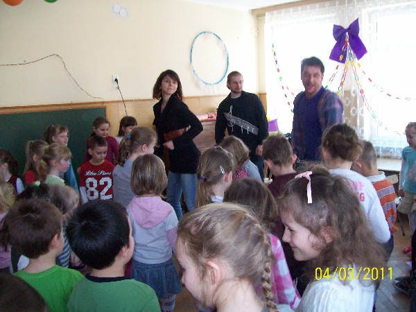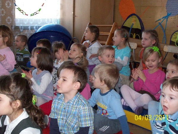Dnia 02.03.2011r. Agencja Artystyczna "Zielona szkoła" wystąpiła ze spektaklem pt. "Od przedszkola do Opola" . Dzieci pozanały historię powstania instrumentów muzycznych tj. gitary i bębna . Przy ich dźwiękach nauczyły się krótkiej piosenki ilustrowanej ruchem , a także kilku kroków tańca nowoczesnego . Wszyscy swietnie się bawiliśmy .