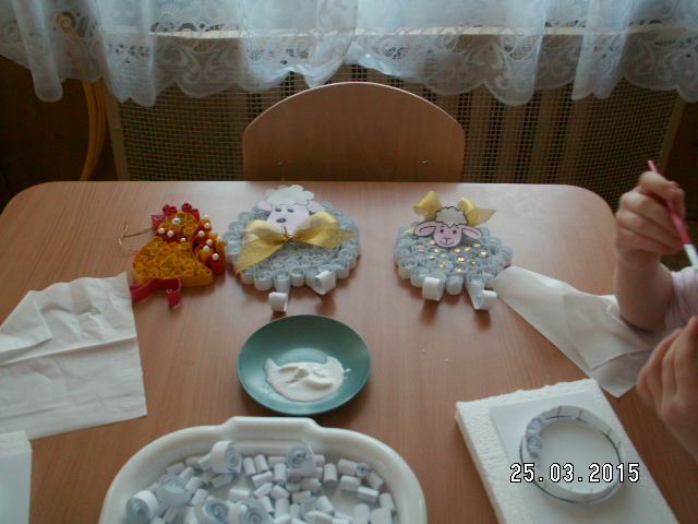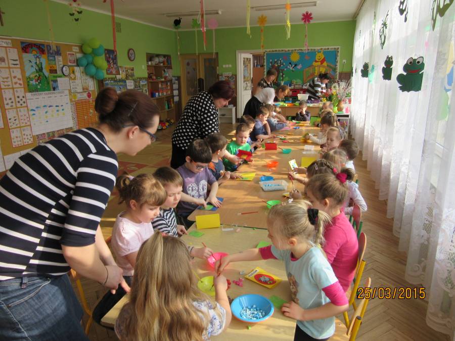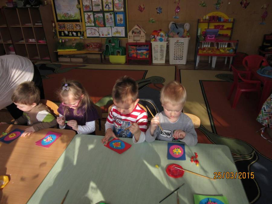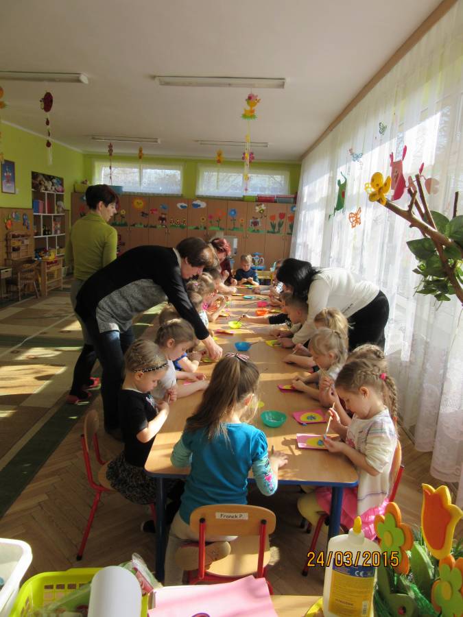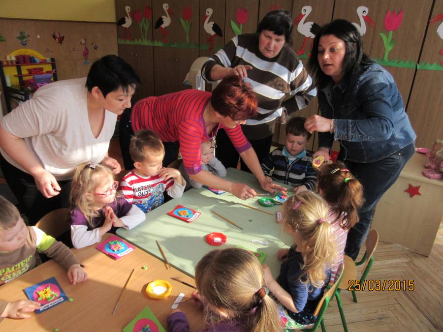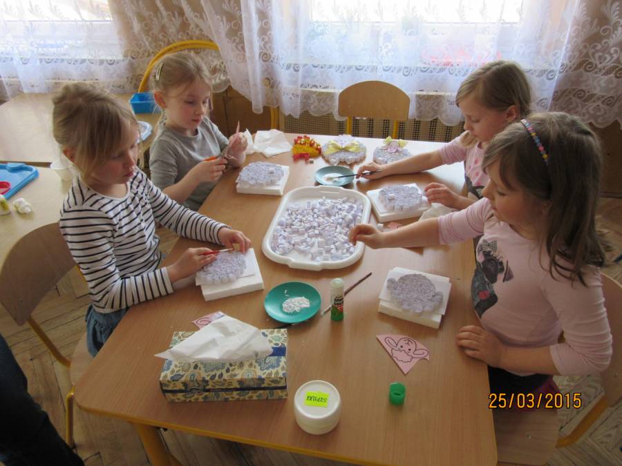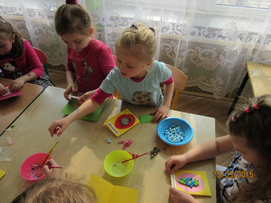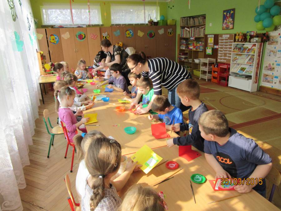 W związku z tym zaprosiliśmy do Przedszkola Nr 1 Panie z Uniwersytetu III Wieku, które pokazały nam jak ciekawie metodą quiling wykonać pocztówki. Takie warsztaty odbyły się w każdej grupie. Dzieci były bardzo zainteresowane i chętne do pracy. Zgodnie z instrukcjami pani Teresy Rygasiewicz zwijały papierowe paski, naklejały kolejne elementy i dopasowywały odpowiednie kolory. Efekt końcowy był niesamowity. Każda kartka była wyjątkowa i na pewno spodoba się osobie, która ją otrzyma.