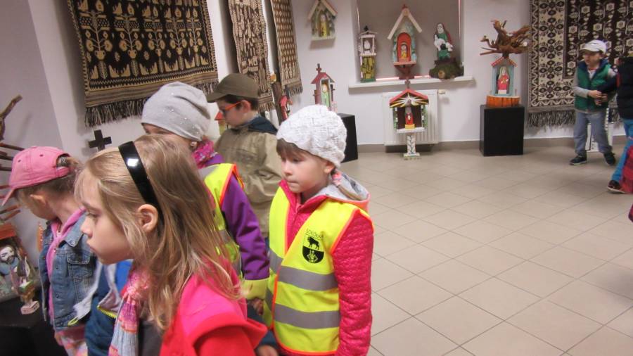 W związku z realizowaną tematyką dotyczącą naszego miasta, dniu 12.05.2015r. (wtorek) dzieci 5-6 letnie z grupy „Kolorowych akwarelek” zwiedziły Muzeum Ziemi Sokólskiej. Przedszkolaki po raz pierwszy były w takim, niezwykłym miejscu. Dlatego też była to dla nich niebywała atrakcja. Dzieci obejrzały również wystawę rzeźby znanego artysty amatora mieszkającego na Podlasiu.