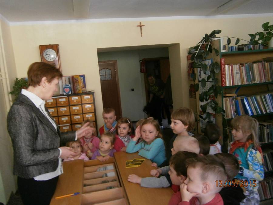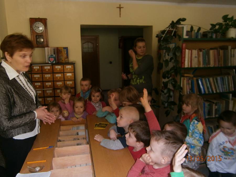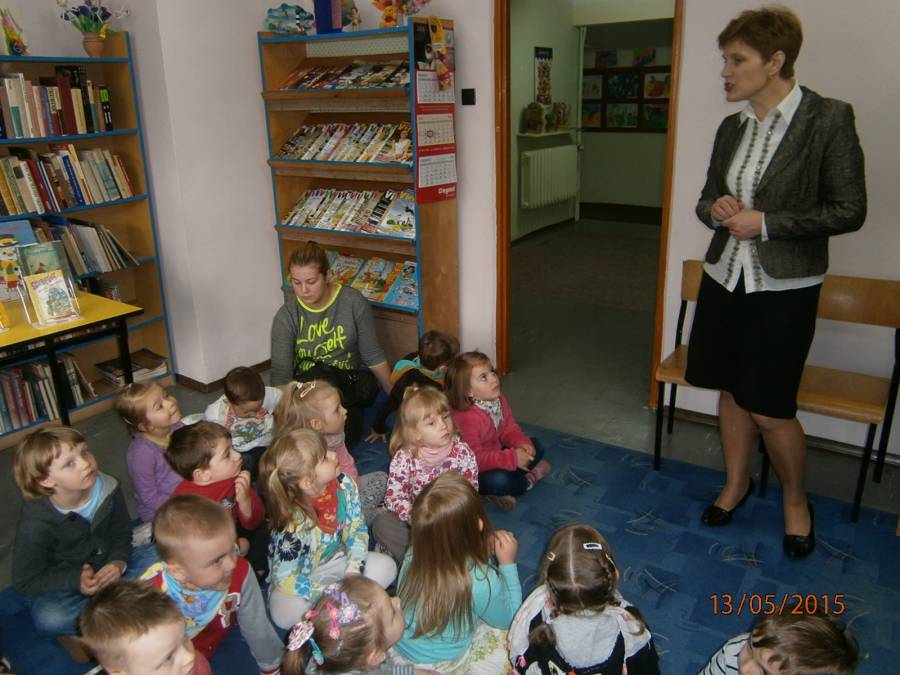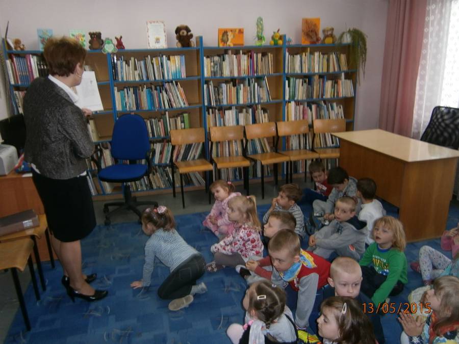 Dnia 13.05.2015 r. przedszkolaki z grupy „Zaczarowane pacynki” odwiedziły Bibliotekę Dziecięcą w Sokółce. Dowiedziały się jak założyć kartę i jak wypożyczać książki, były również w czytelni. To była ciekawa wycieczka, która przyczyniła się do rozwijania zainteresowań czytelniczych.