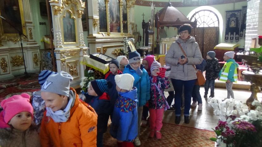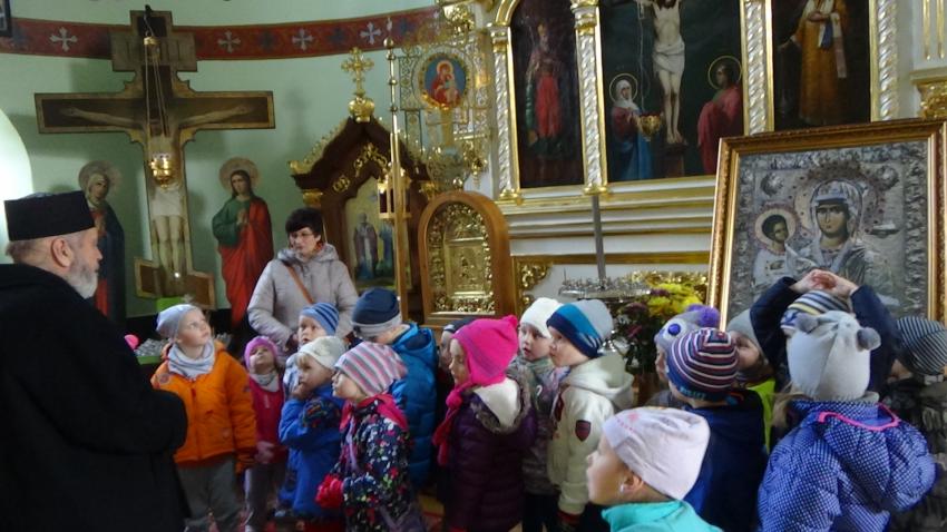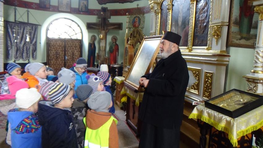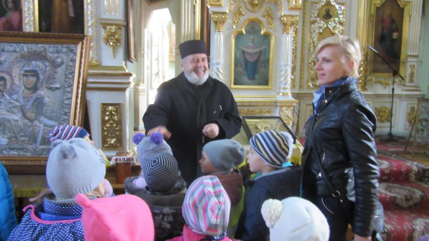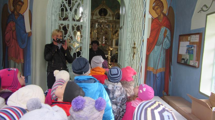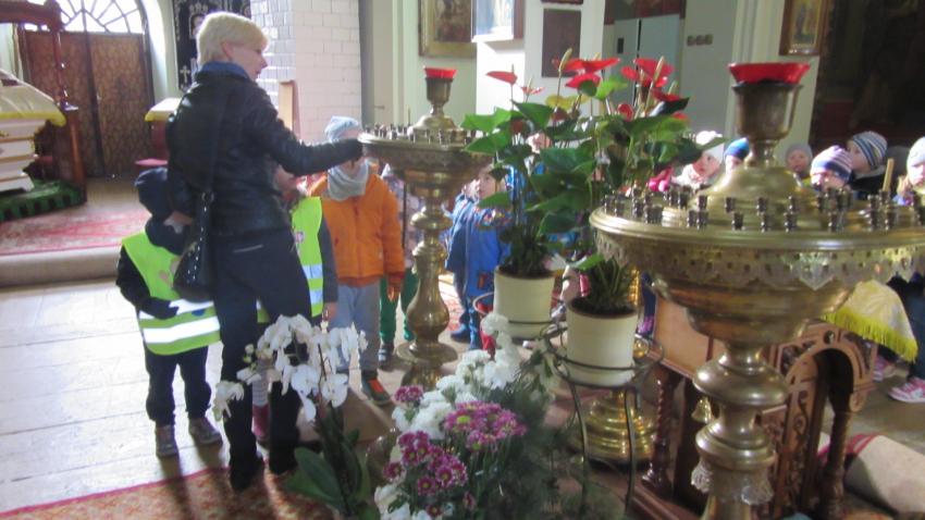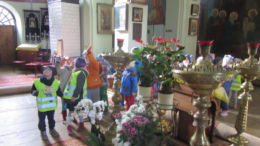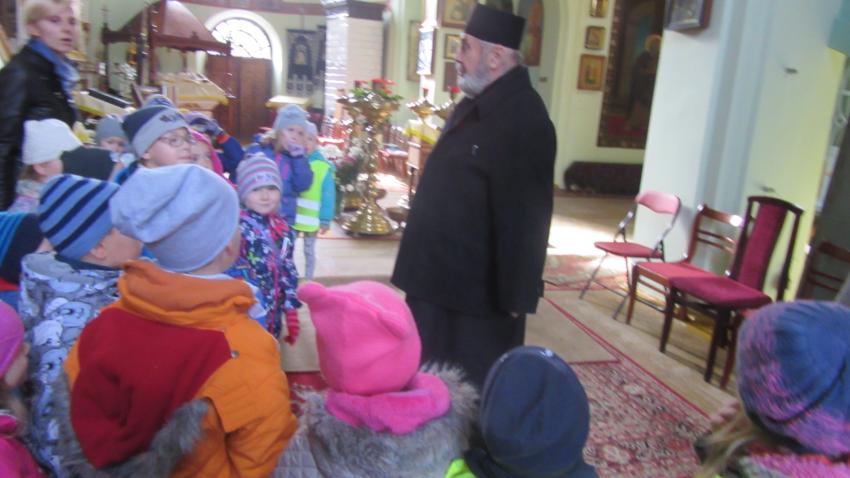 W poniedziałek 12.10.2015 roku przedszkolaki wybrały się, aby zwiedzić jedną z najstarszych świątyni w mieście z ponad 160- letnią tradycją –Cerkiew pod wezwaniem św. Aleksandra Newskiego. Oglądały wszystko z zaciekawieniem, obserwowały, zadawały wiele pytań, na które ksiądz Włodzimierz Misiejuk starał się odpowiedzieć w najbardziej zrozumiały sposób. Wchodziły również na górę po nietypowych schodach, gdzie podczas mszy śpiewa chór. Widok na całą Cerkiew był stamtąd niesamowity. Na zakończenie dzieci podziękowały za spotkanie i wręczyły księdzu laurkę. Wszystkim wycieczka się bardzo podobała.