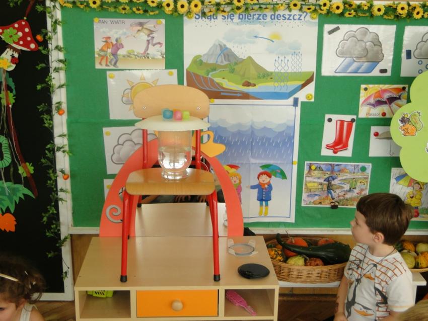 Za nami kolejne zabawy badawcze. Tym razem dowiedzieliśmy się „Jak powstaje deszcz”.