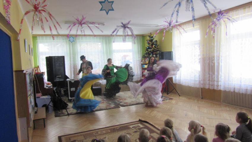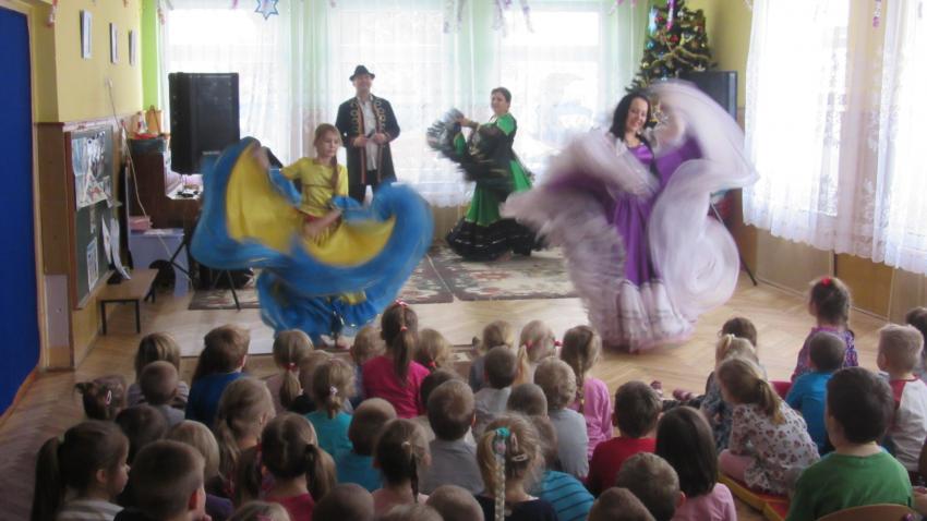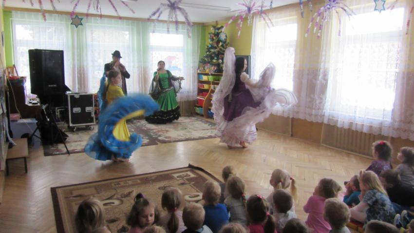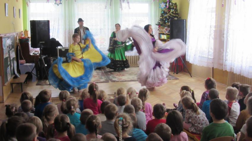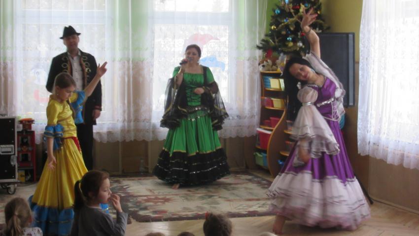 W Przedszkolu Nr 1 gościliśmy zespół „Cygańskie serca”. Artyści bawili nas nie tylko pięknym śpiewem, ale również oczarowali niezwykłym tańcem. Atmosfera tego zimowego dnia został rozgrzana do maksimum. Jeszcze długo po odjeździe naszych gości w salach rozbrzmiewały cygańskie rytmy z płyty, którą otrzymaliśmy w prezencie.