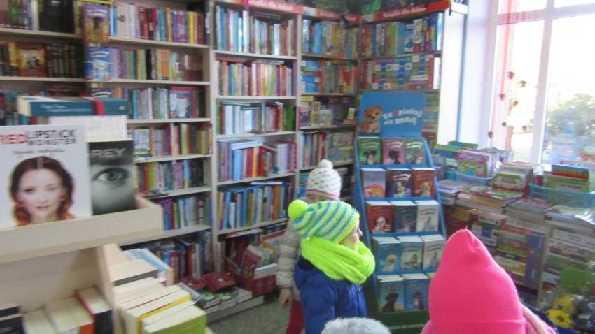 Realizując tematykę dotyczącą książek grupa „Tęczowych kredek” wybrała się na wycieczkę do księgarni „ A kuku” . Celem wycieczki było przede wszystkim zaznajomienie najmłodszych z pracą księgarza oraz zapoznanie z wyglądem i księgozbiorem sklepu. Pani przedstawiła nam ciekawe pozycje książkowe dostosowane do wieku dziecka przedszkolnego.. Dzieci miały możliwość obserwować ludzi robiących zakupy a nawet i same kupiły dwie ciekawe książeczki do naszej Sali. Przedszkolaki w prezencie otrzymały kolorowe katalogi, książeczki z bajkami i zakładki do książek.