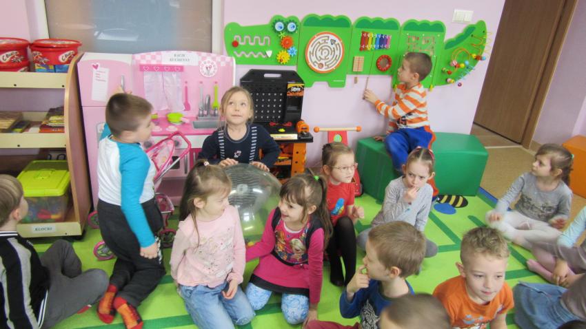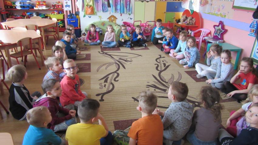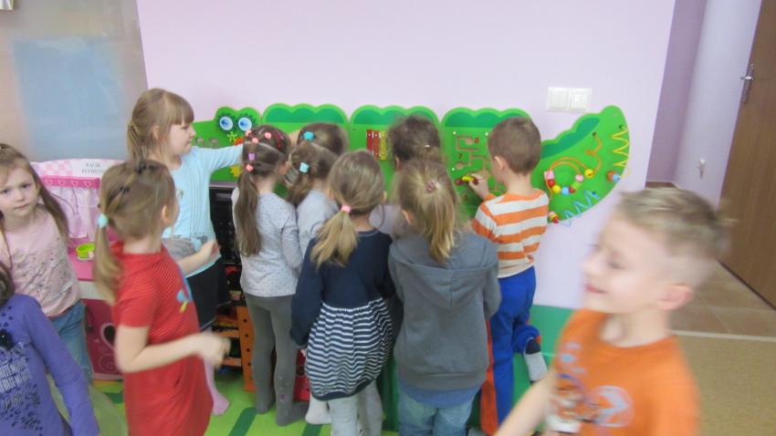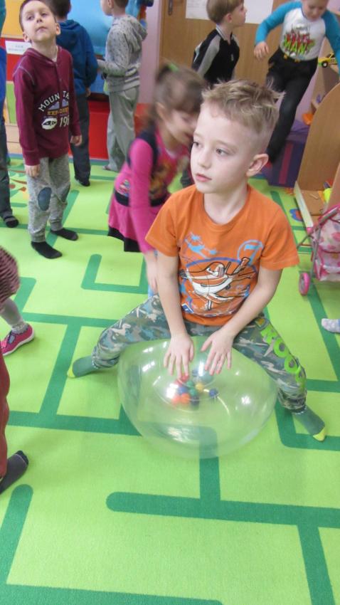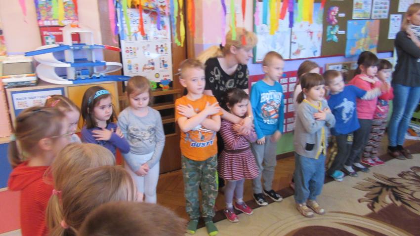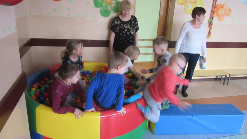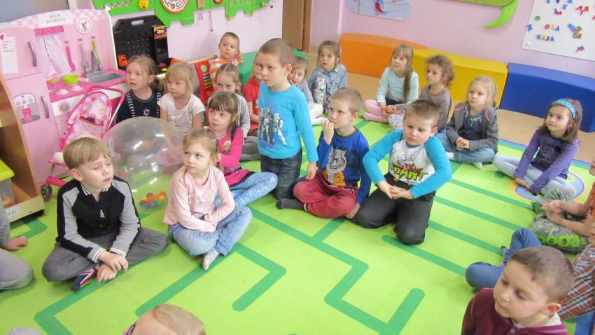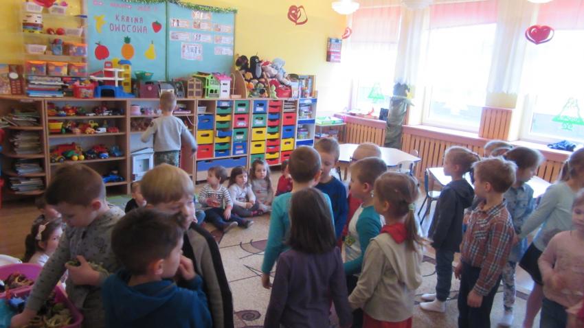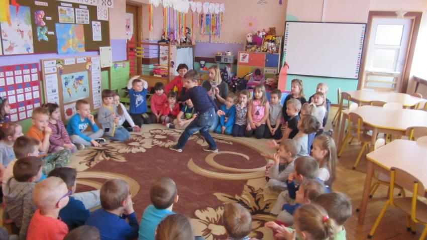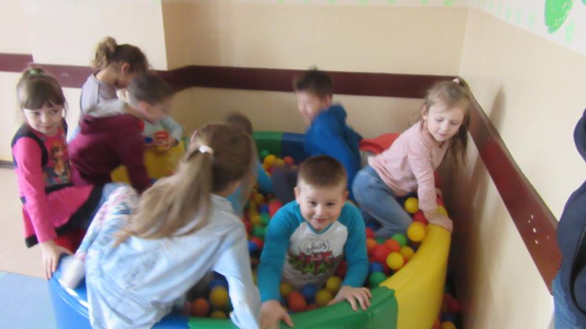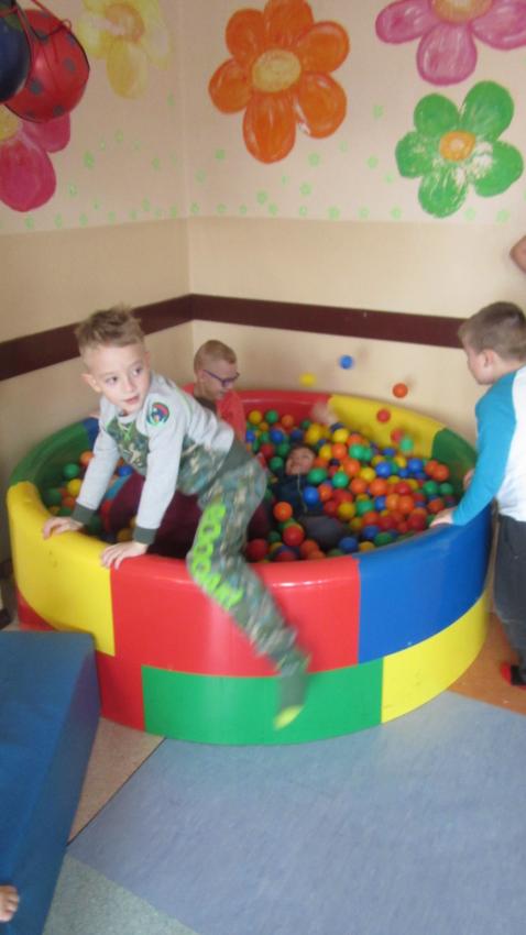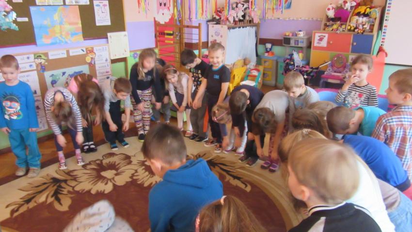 Starszaki z naszego przedszkola zostały zaproszone w przez panią Dyrektor Lucynę Szymańską do odwiedzenia jej przedszkolaków. Dzieci miały okazję integrować się podczas wspólnej zabawy, tańców i śpiewania.