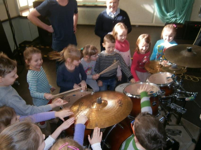 9 marca przedszkolaki z grupy „Tęczowe kredki” w ramach realizacji tematyki o instrumentach wzięły udział w niesamowitych zajęciach zorganizowanych przez Sokólski Ośrodek Kultury w Sokółce. Najpierw dzieci mogły obejrzeć zaprezentowane instrumenty, posłuchać, dowiedzieć się o nich wielu ciekawostek, ale także spróbować zagrać. Nie zabrakło też zagadek i zadań muzycznych. Dzieci doskonale się wczuły w muzykę rockową i doskonale się bawiły. To była niesamowita wycieczka. Dziękujemy serdecznie wszystkim pracownikom Domu Kultury za miłe przyjęcie i poświęcony nam czas.