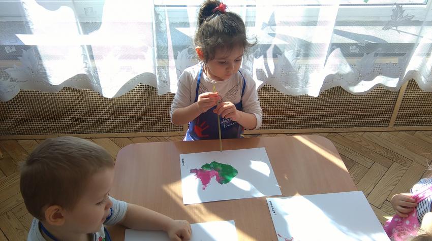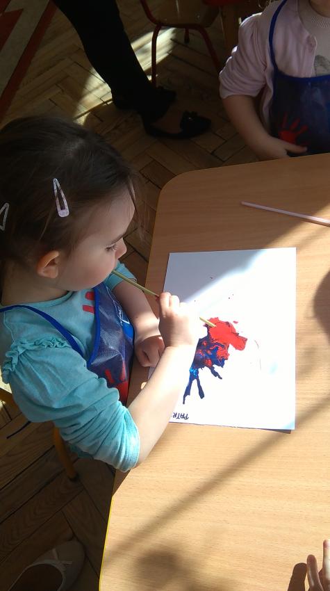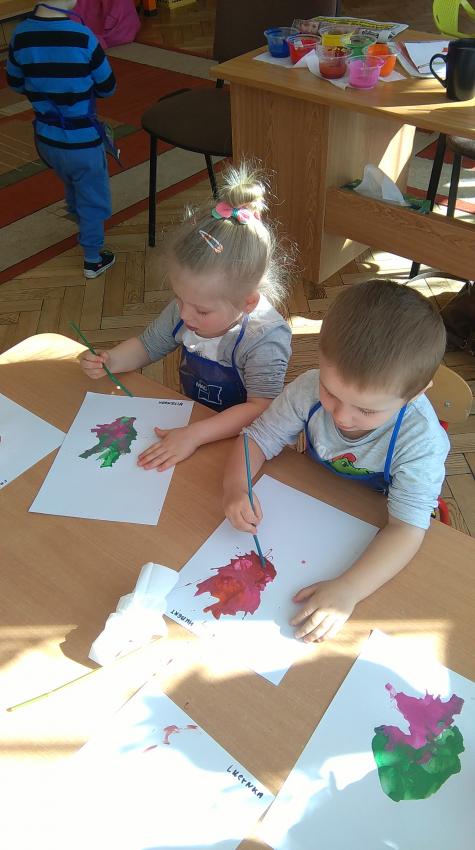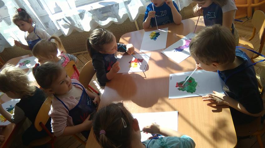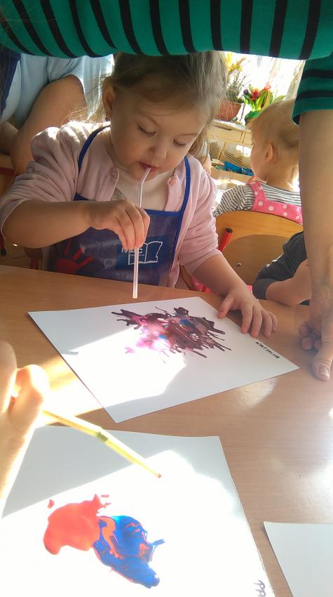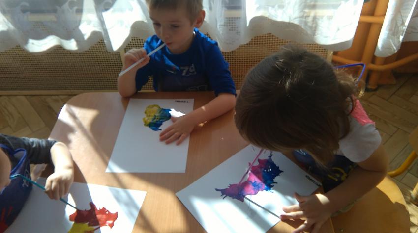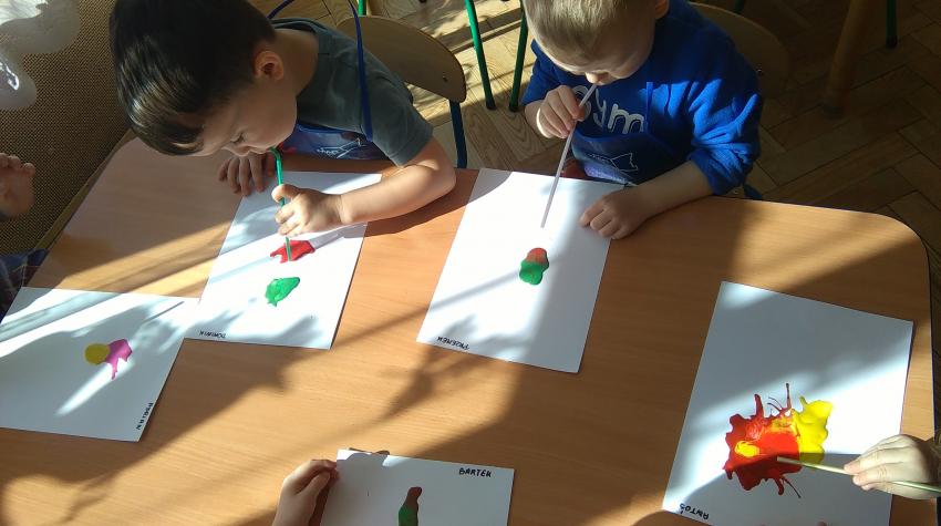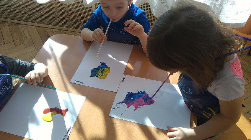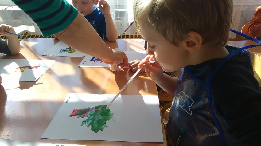 Dzieci z grupy „Wesołe Dzwoneczki” tworzyły prace za pomocą słomki do picia. Za zadanie miały stworzenie kolorowych bakterii przy pomocy plamy z farby plakatowej. Powstały bardzo kolorowe i ciekawe potworki...