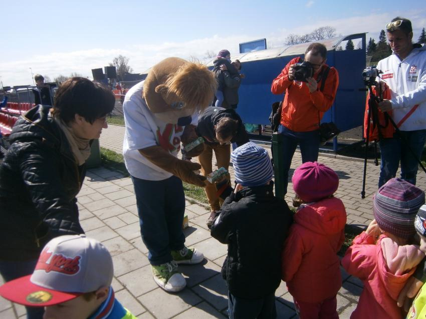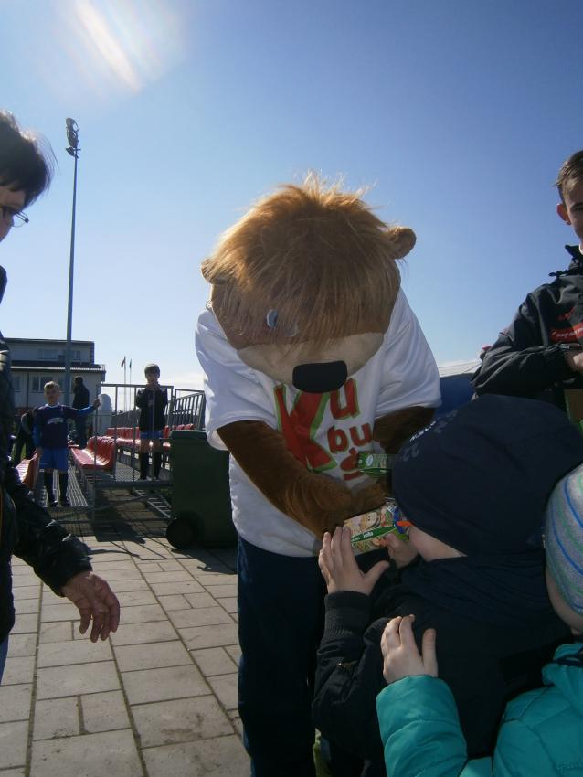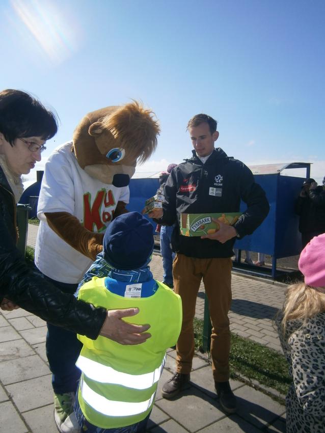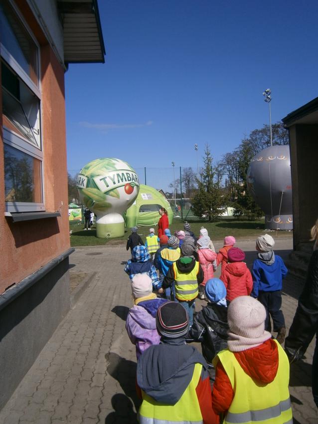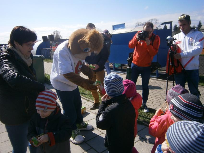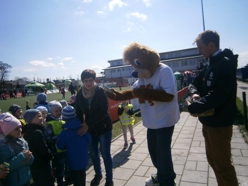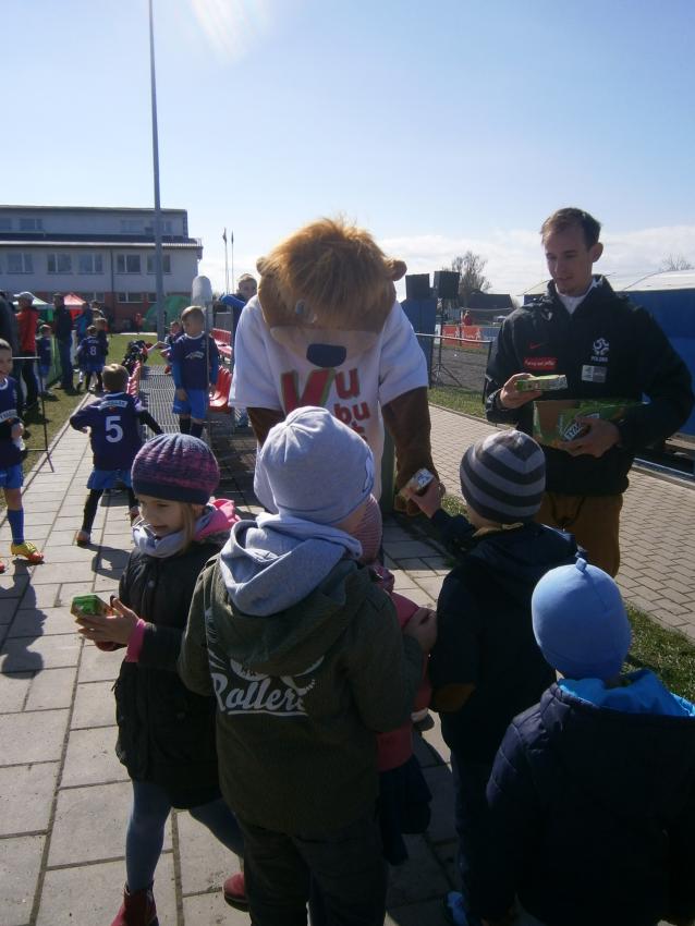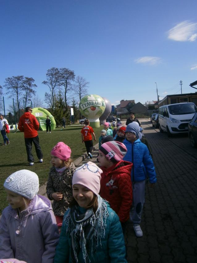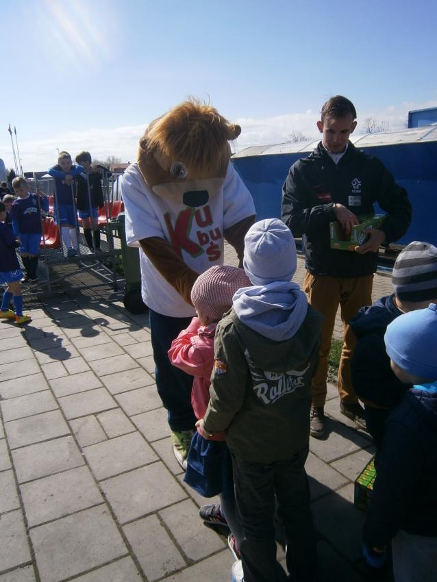 W piątek 15.04.2016 przedszkolaki z grupy „Zaczarowane pacynki” i „Tęczowe kredki” wybrały się na stadion OSiR w Sokółce. Odbywał się tam finał wojewódzki turnieju piłki nożnej „Z podwórka na stadion” o Puchar Tymbarku. Dzieci miały okazje obserwować rozgrywki sportowe zarówno chłopców jak i dziewczyn. Jedną z atrakcji był KUBUŚ, który przyszedł się do nas przywitać i wręczył nam pyszne soczki. Na pamiątkę mogliśmy zrobić sobie zdjęcie z nowym kolegą.
