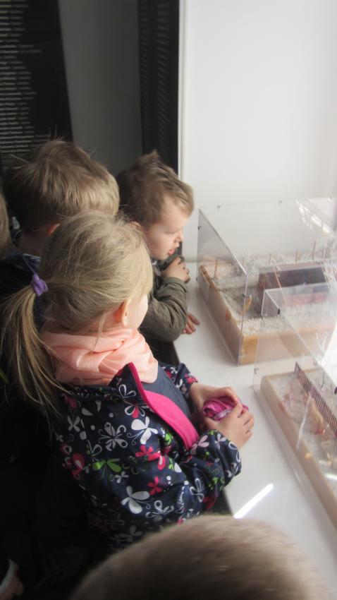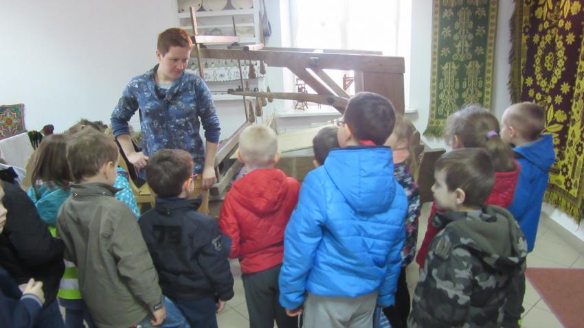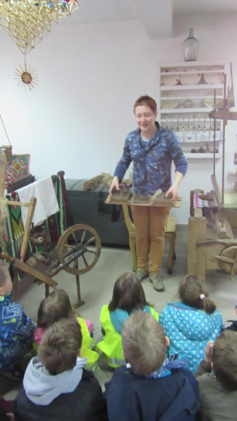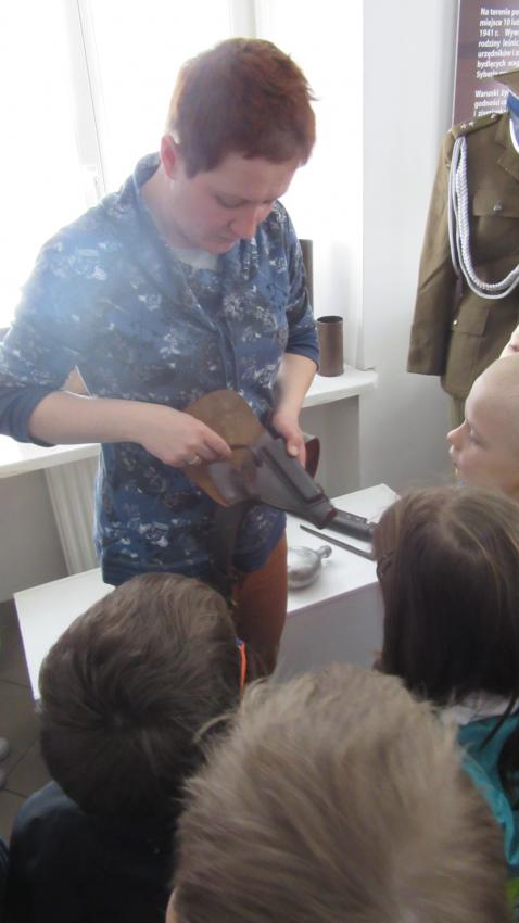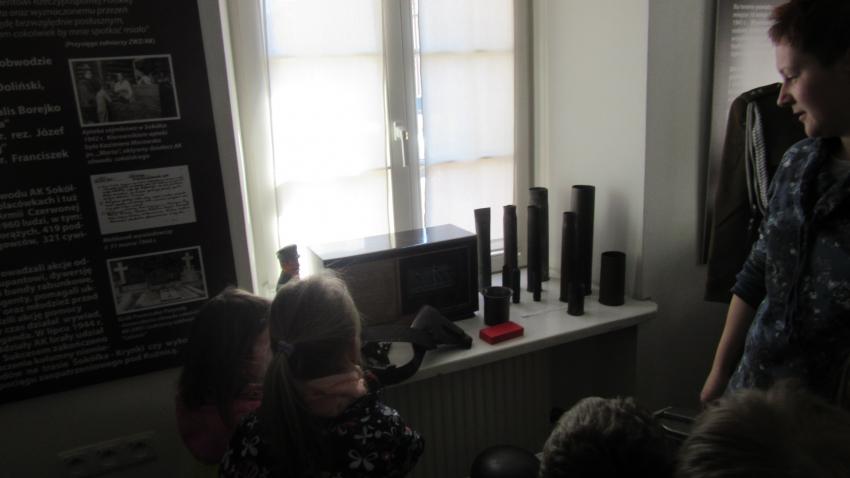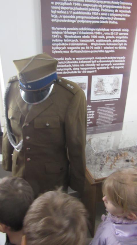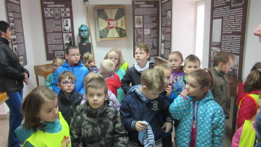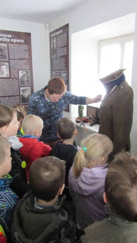 W czwartek 21.04.2016 r. przedszkolaki z grupy „Tęczowe kredki” zwiedzały Muzeum Ziemi Sokólskiej. Oglądaliśmy zbiory przedmiotów użytkowych związanych z życiem codziennym na wsi sokólskiej, podziwialiśmy zaaranżowane wnętrze izby wiejskiej oraz zbiór pięknych tkanin powstałych na tradycyjnych warsztatach tkackich. Ze względów na realizowaną w naszej grupie innowację pedagogiczną „Historia w przedszkolu” głównie uwagę zwróciliśmy na wystawę historyczną, która w przystępny sposób przybliża historię miasta oraz prezentuje pamiątki ofiarowane przez mieszkańców Ziemi Sokólskiej. Naszych przedszkolaków zainteresował szczególnie mundur i atrybuty żołnierskie.