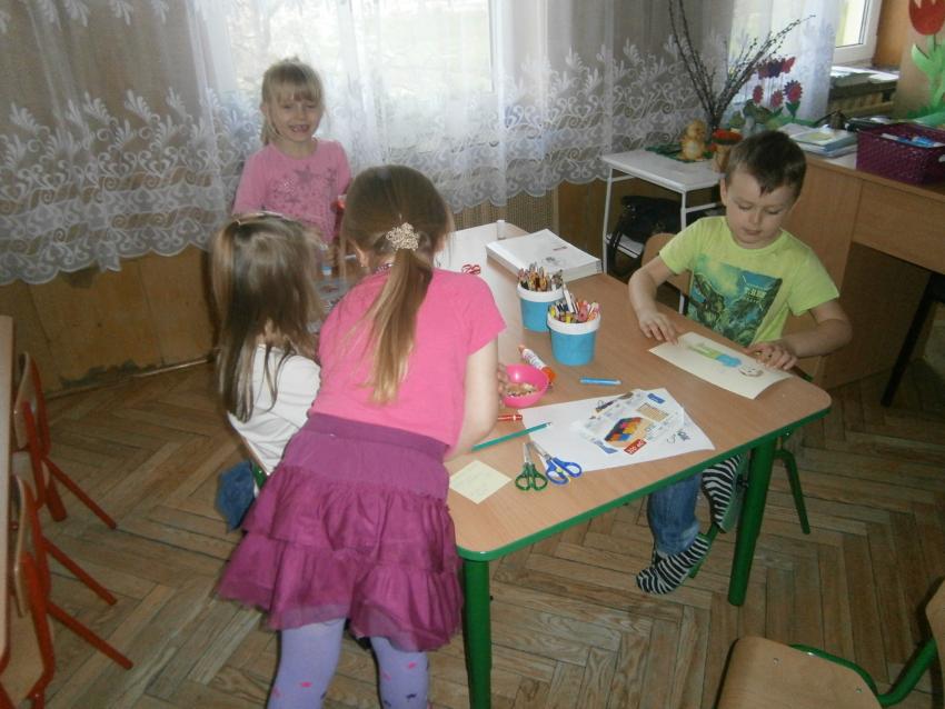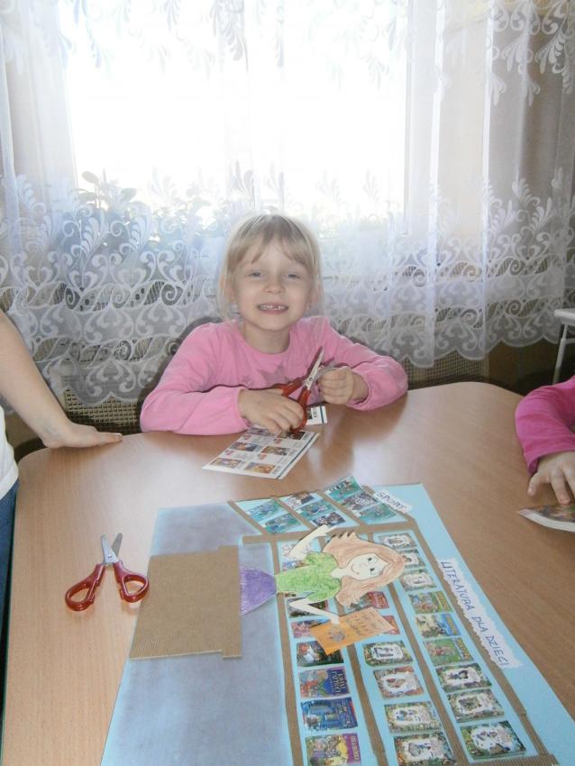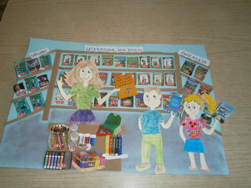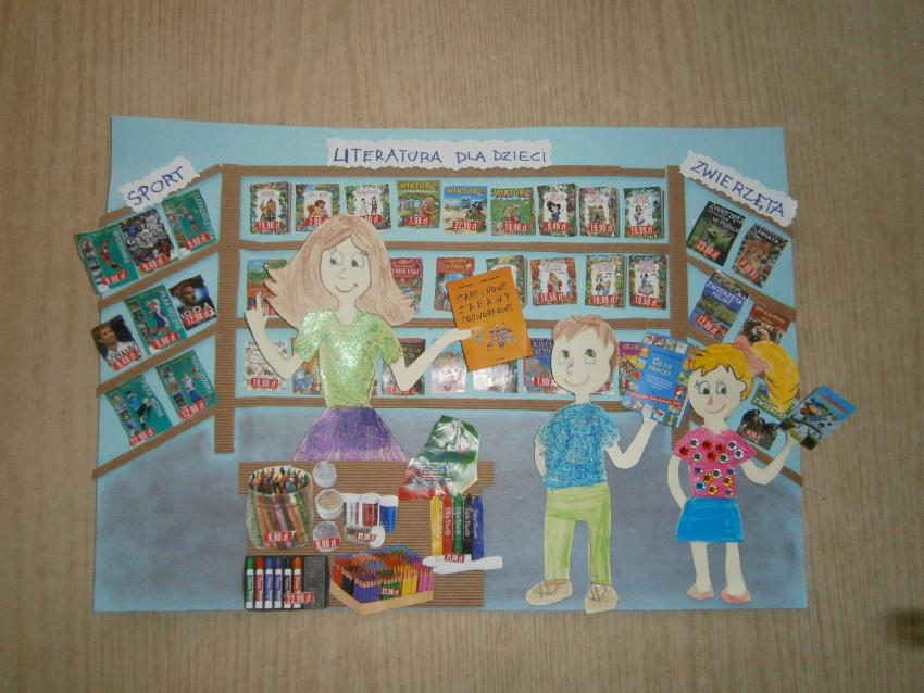 Przedszkolaki z grupy „Tęczowe kredki” z okazji Światowego Dnia Książki postanowiły spróbować swoich sił w konkursie plastycznym organizowanym przez Księgarnię „DOM KSIĄŻKI”. Wykonały grupową pracę na temat pracy w księgarni.
