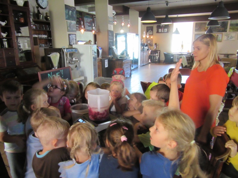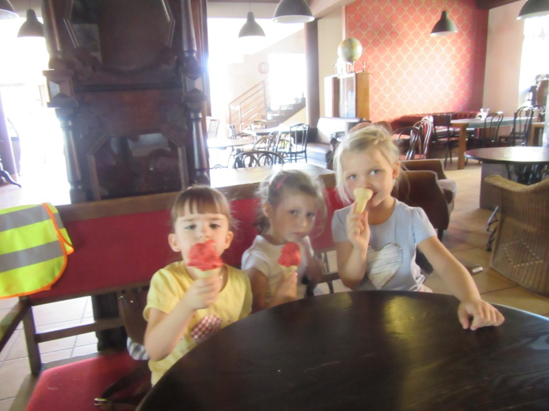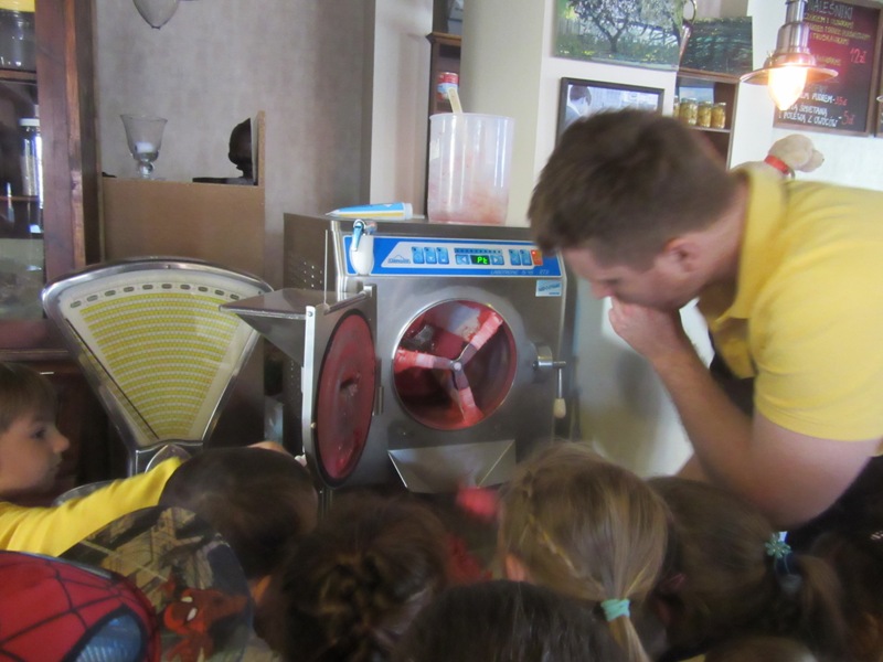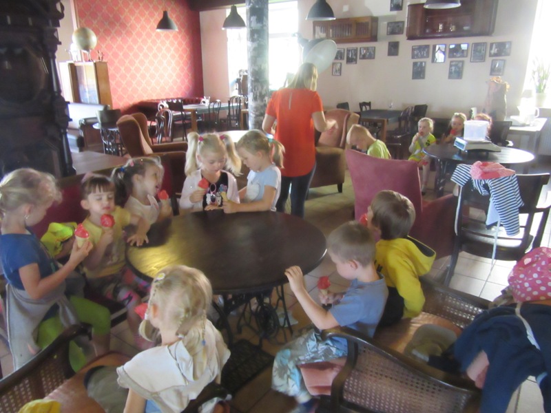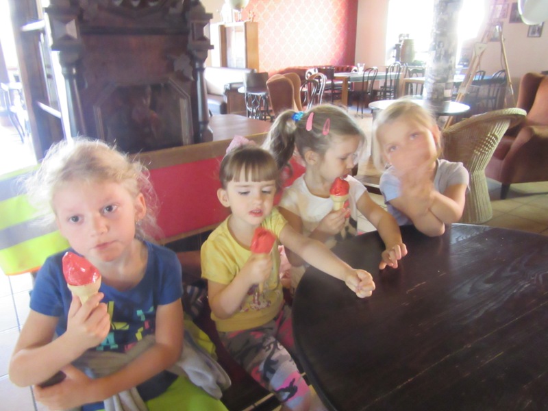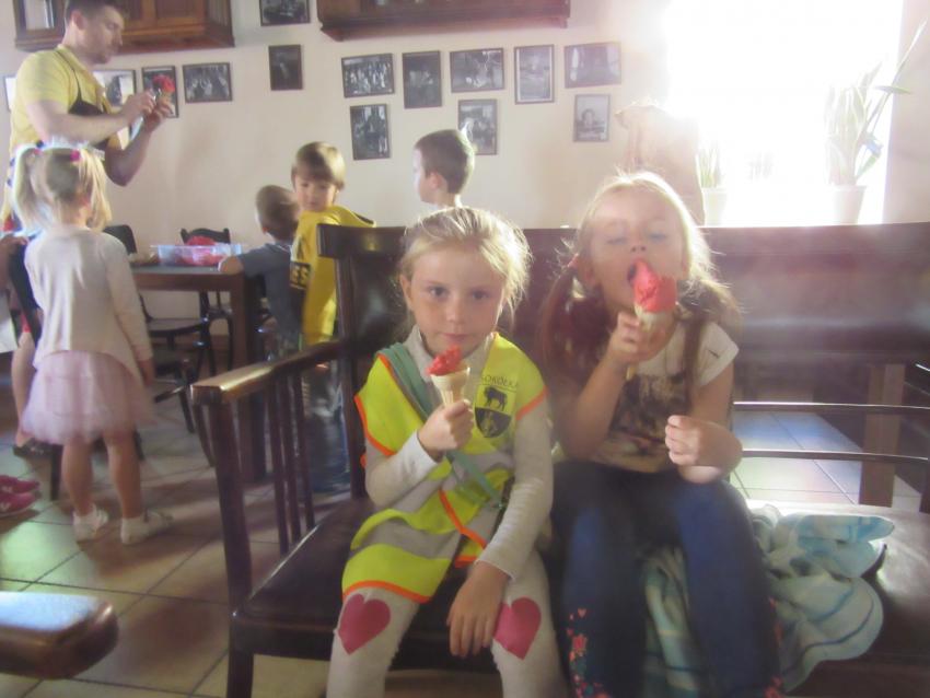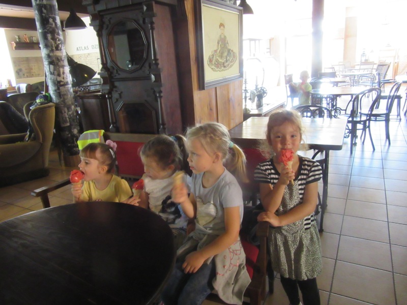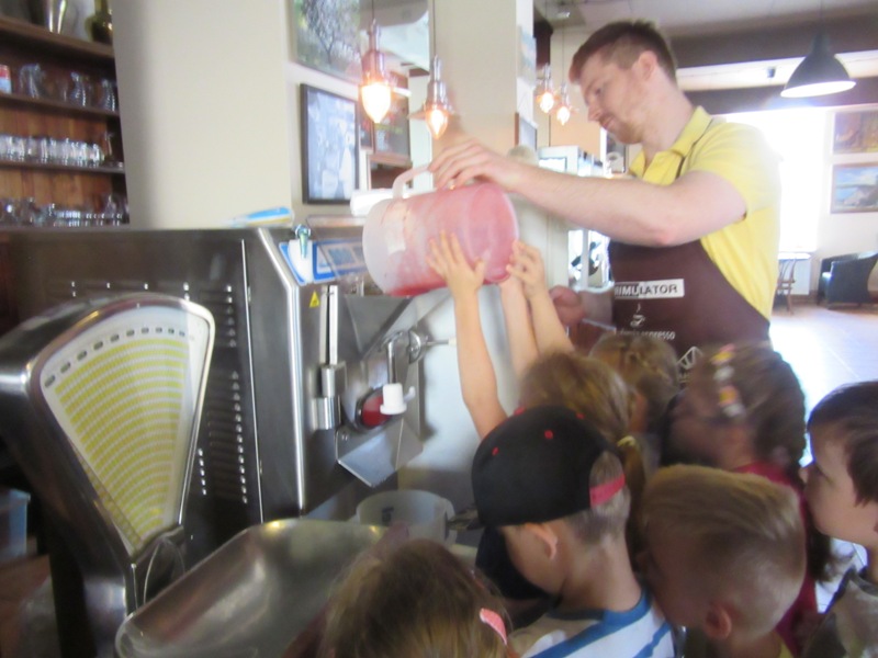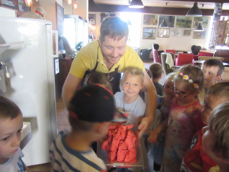 Po powrocie z wakacji, korzystając z pięknej słonecznej pogody przedszkolaki z grupy „Kolorowe akwarelki” postanowiły schłodzić się nieco w pobliskiej lodziarni. Dzięki uprzejmości Pana Łukasza Dudkowskiego mieliśmy okazję poznać tajemnice powstawania przepysznych lodów. Dzieciaki chętnie pomagały we wszystkich czynnościach i z wielkim zainteresowaniem oglądały kolejne etapy wykonywania lodów malinowych. Na końcu pozostała jedynie sama przyjemność zjedzenia słodkości. Miny dzieci mówią same za siebie!