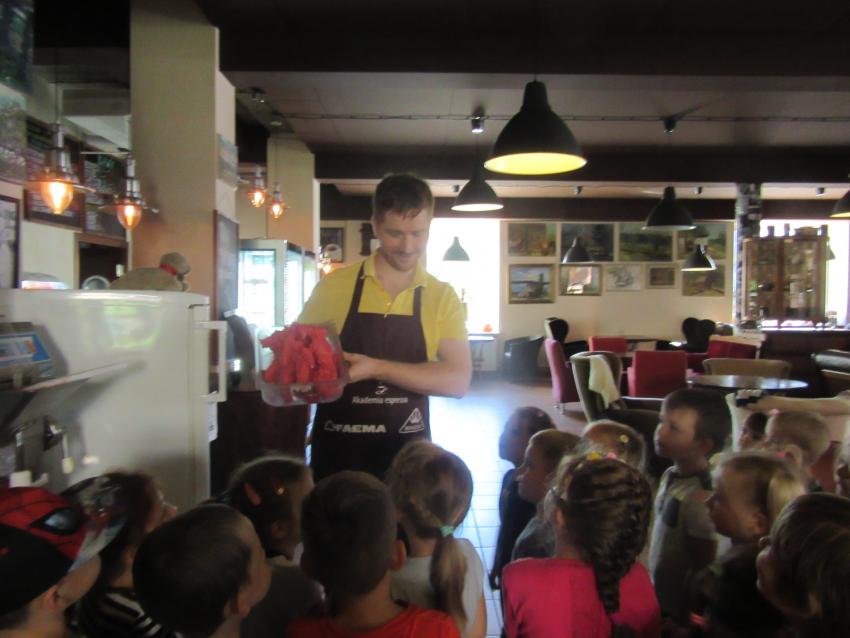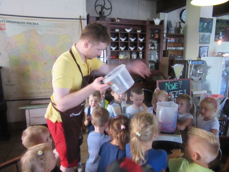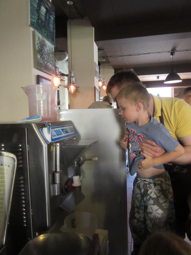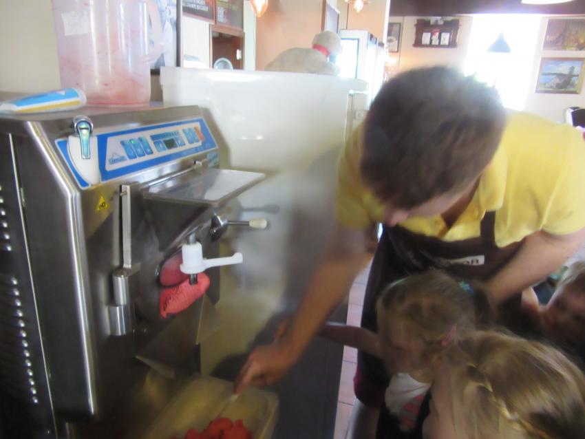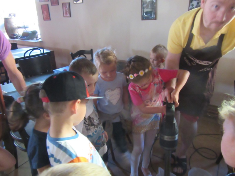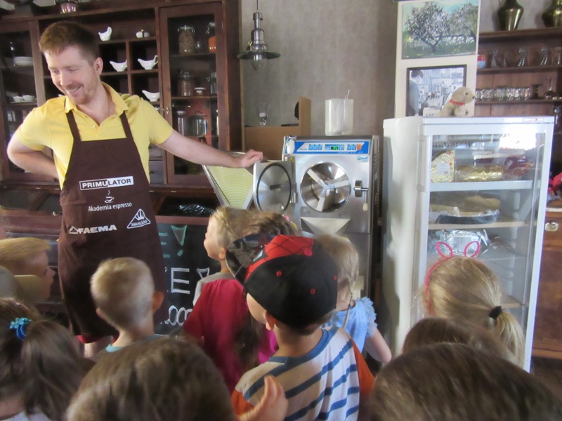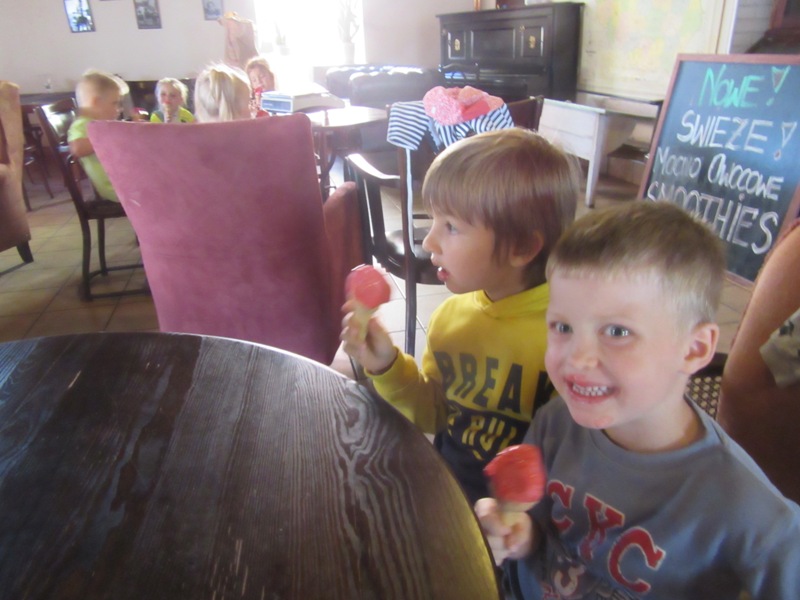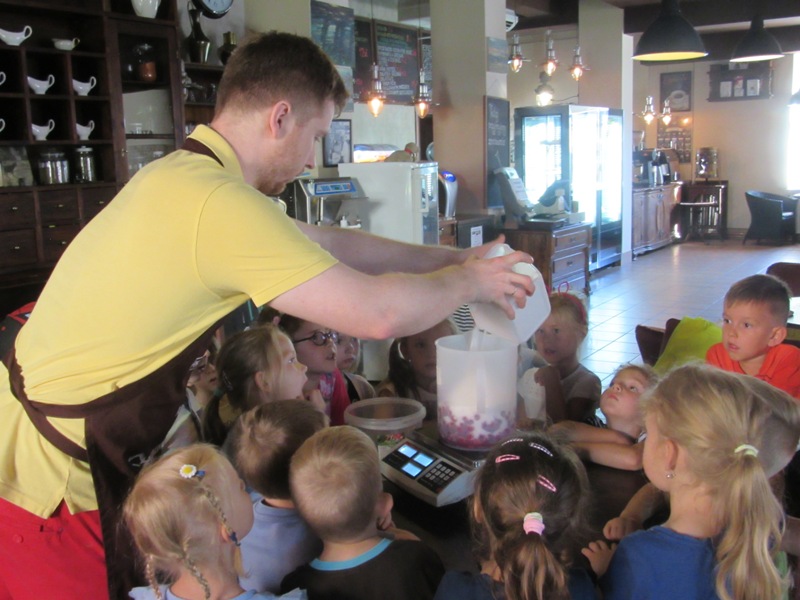 Po powrocie z wakacji, korzystając z pięknej słonecznej pogody przedszkolaki z grupy „Kolorowe akwarelki” postanowiły schłodzić się nieco w pobliskiej lodziarni. Dzięki uprzejmości Pana Łukasza Dudkowskiego mieliśmy okazję poznać tajemnice powstawania przepysznych lodów. Dzieciaki chętnie pomagały we wszystkich czynnościach i z wielkim zainteresowaniem oglądały kolejne etapy wykonywania lodów malinowych. Na końcu pozostała jedynie sama przyjemność zjedzenia słodkości. Miny dzieci mówią same za siebie!