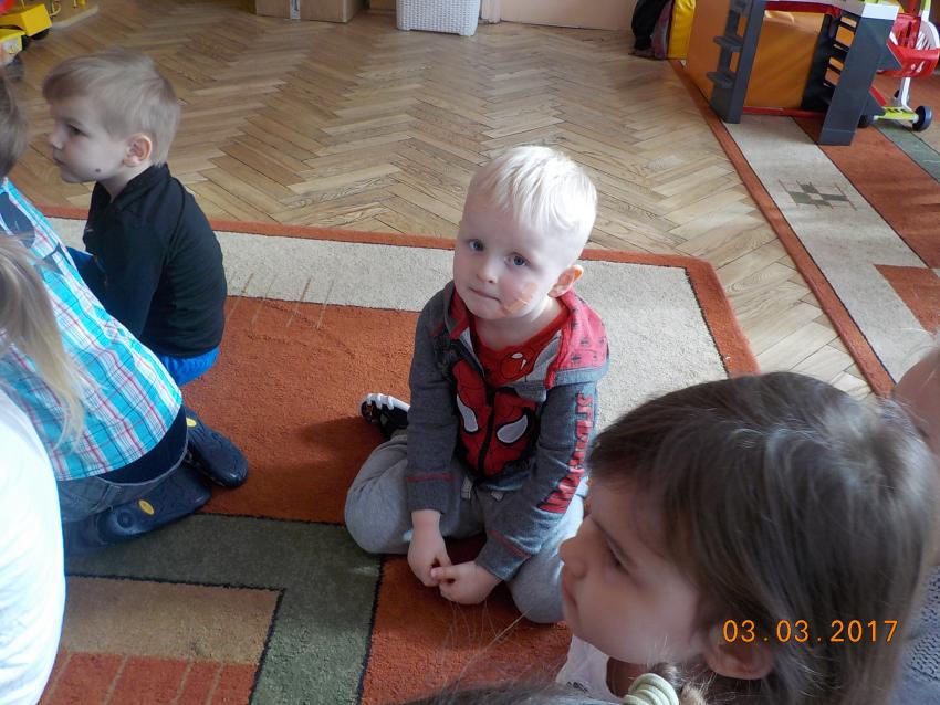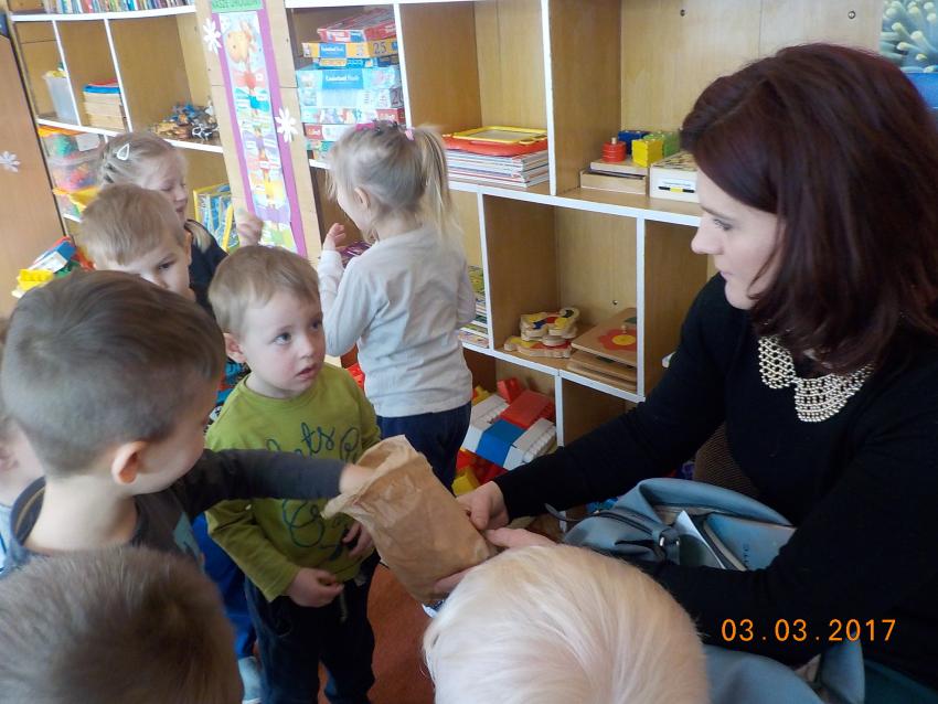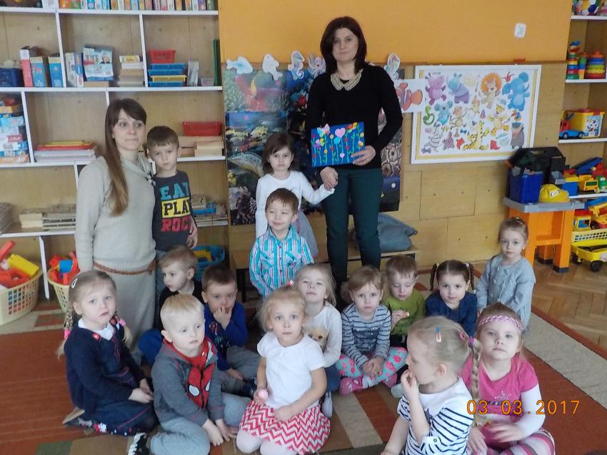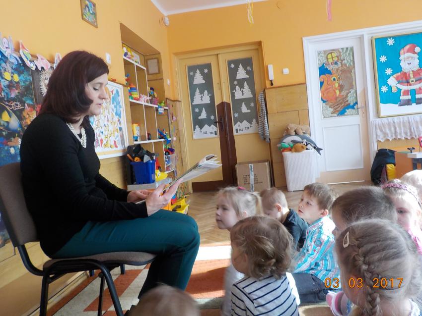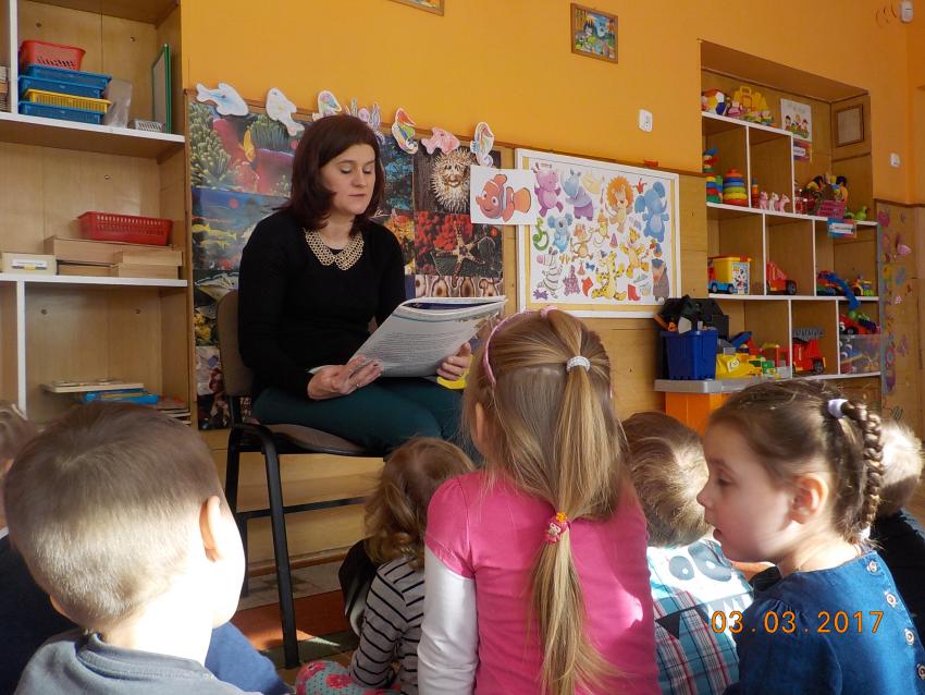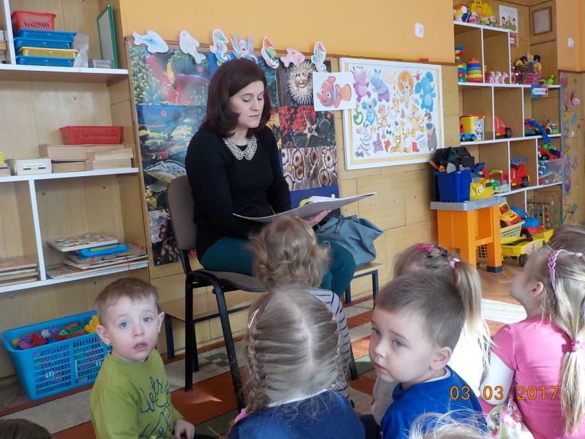 Dnia 03. 03.2017 grupę Wesołe Dzwoneczki odwiedziła mama Malwinki – pani Urszula Awdziej. Przygotowała dla nas książeczkę pt. „Rusałka”. Dzieci były bardzo zainteresowane historią syrenki żyjącej w otchłaniach oceanu, zwłaszcza, że akurat omawiana tematyka dotyczyła tajemnic podwodnego świata. Dziękujemy pani Uli za przemiłe spotkanie, słodkości i poświęcony nam czas.