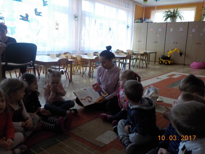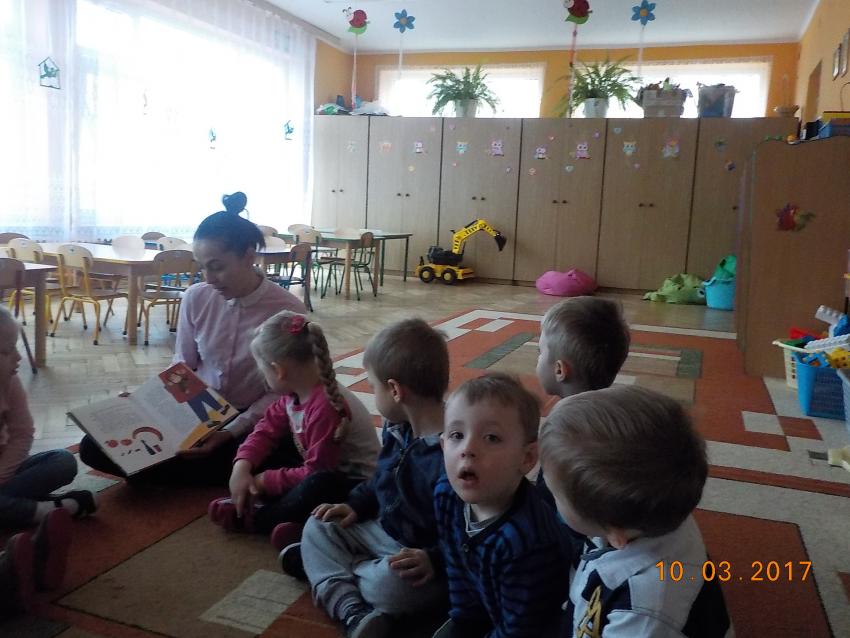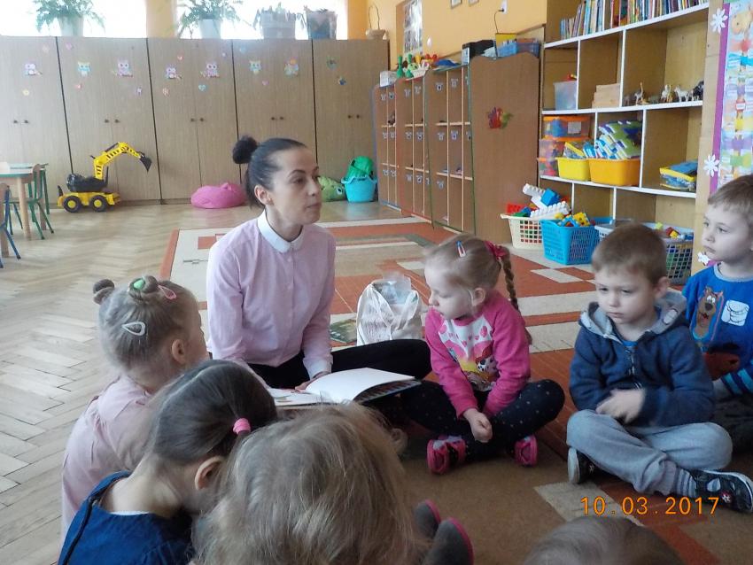 W piątek 10.03.2017 r. kolejna z mam włączyła się do naszej akcji „Poranek z książką”. Pani Ewa Firs zapoznała dzieci z chłopcem - Dudusiem, który zgubił się na stacji. „Przygoda z małpką” okazała się książeczką bardzo ciekawą i poruszającą problemy aktualne dla naszych najmłodszych słuchaczy. Mama Oli przygotowała również słodkości oraz upominki w postaci zakładek do książek. Serdecznie dziękujemy .