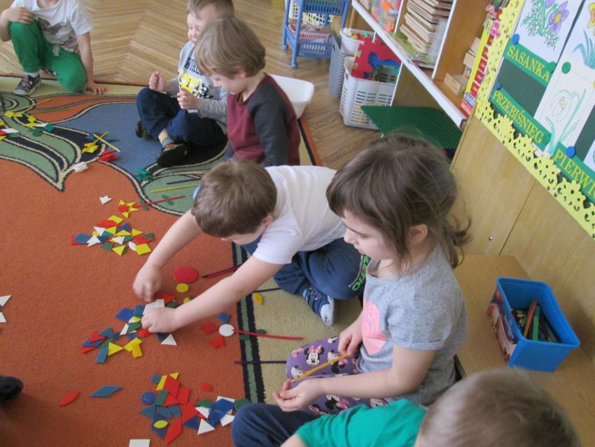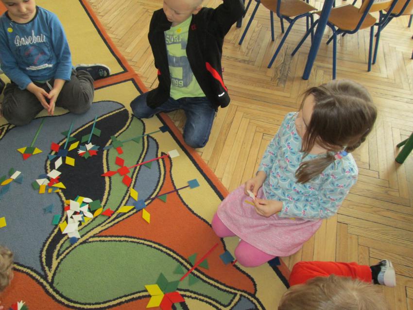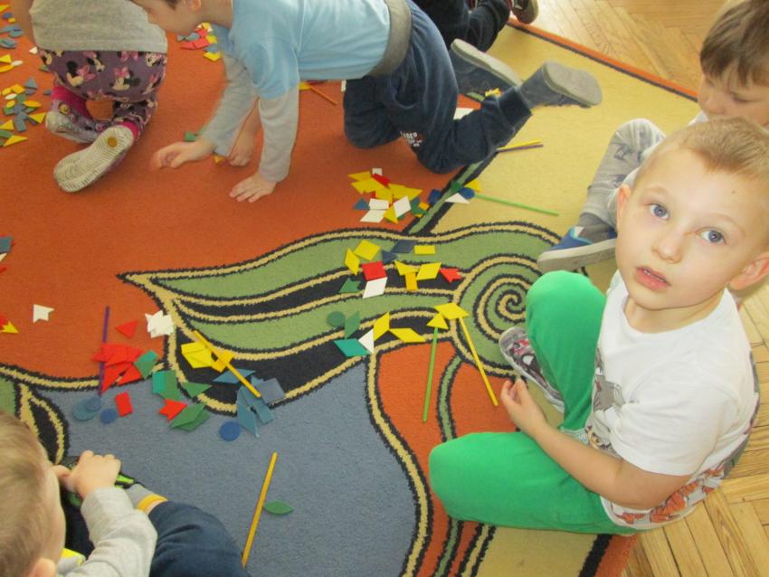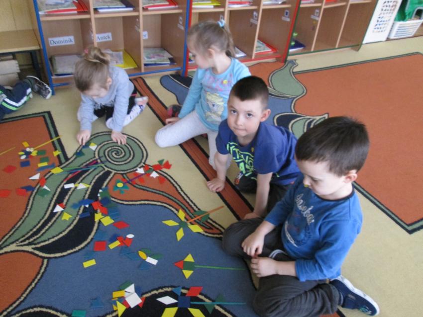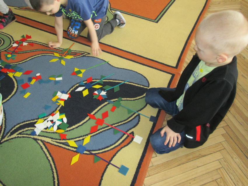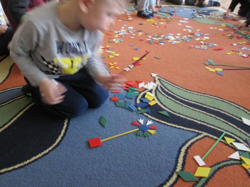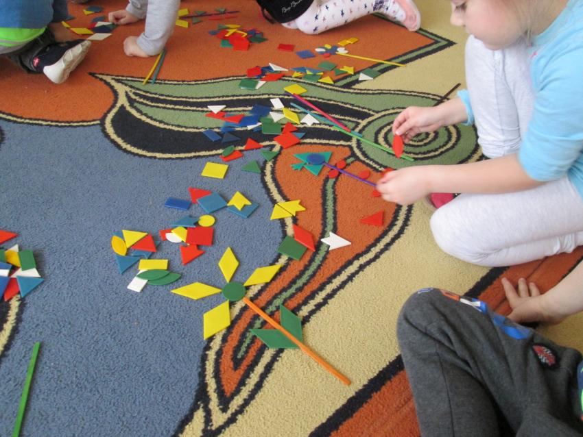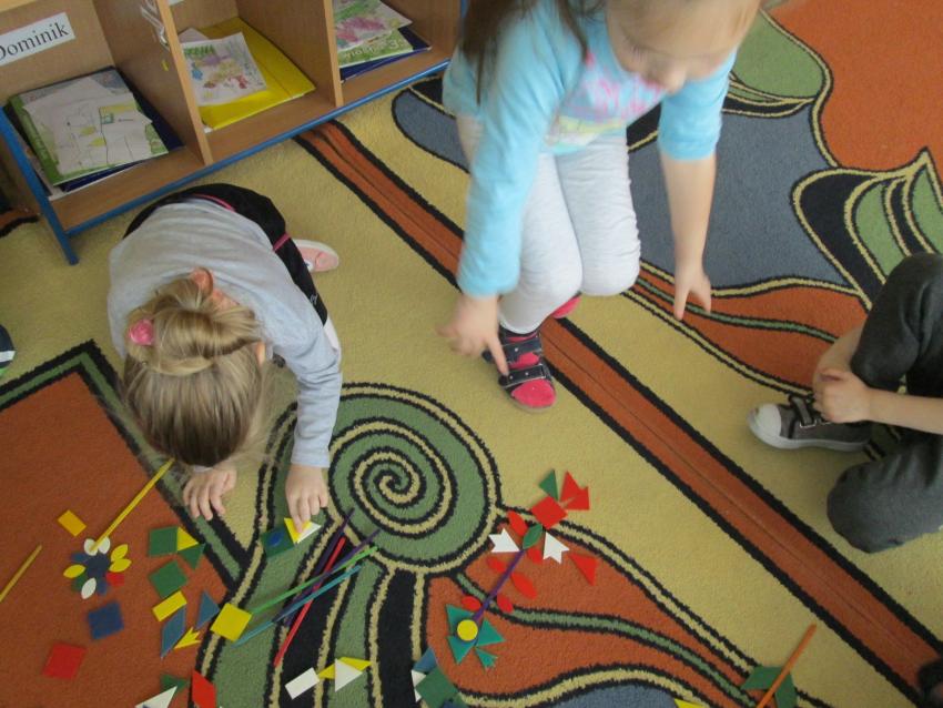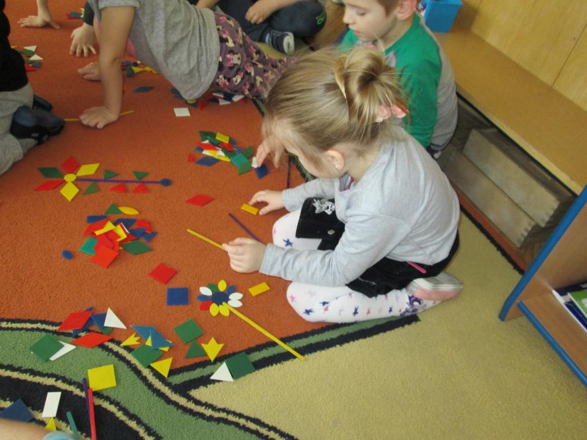 ZACZAROWANE PACYNKI UKŁADAJĄ KWIATY Z FIGUR GEOMETRYCZNYCH