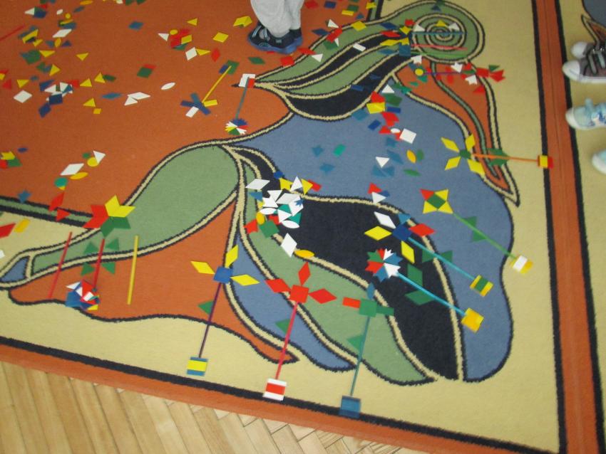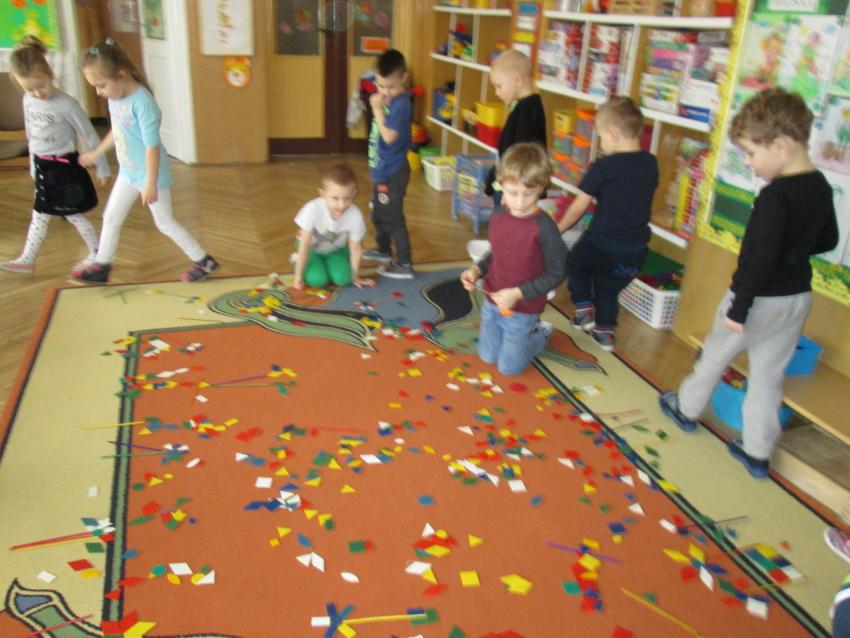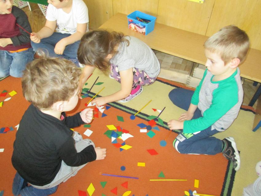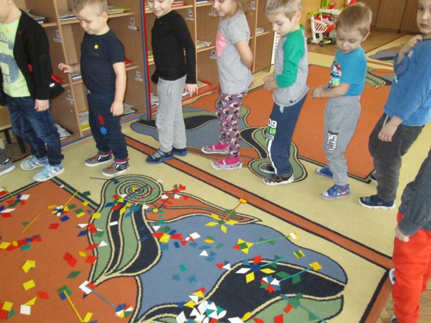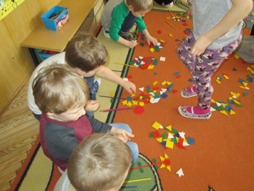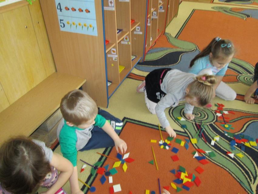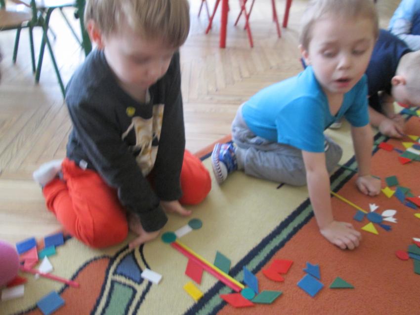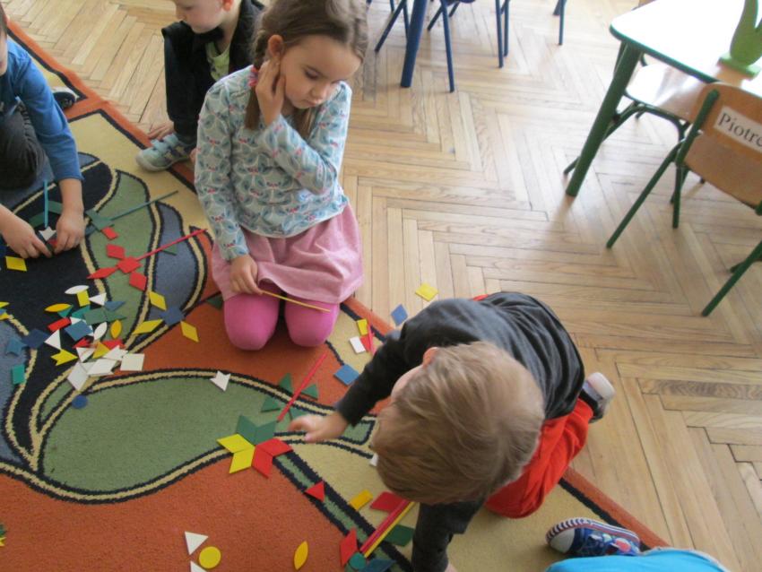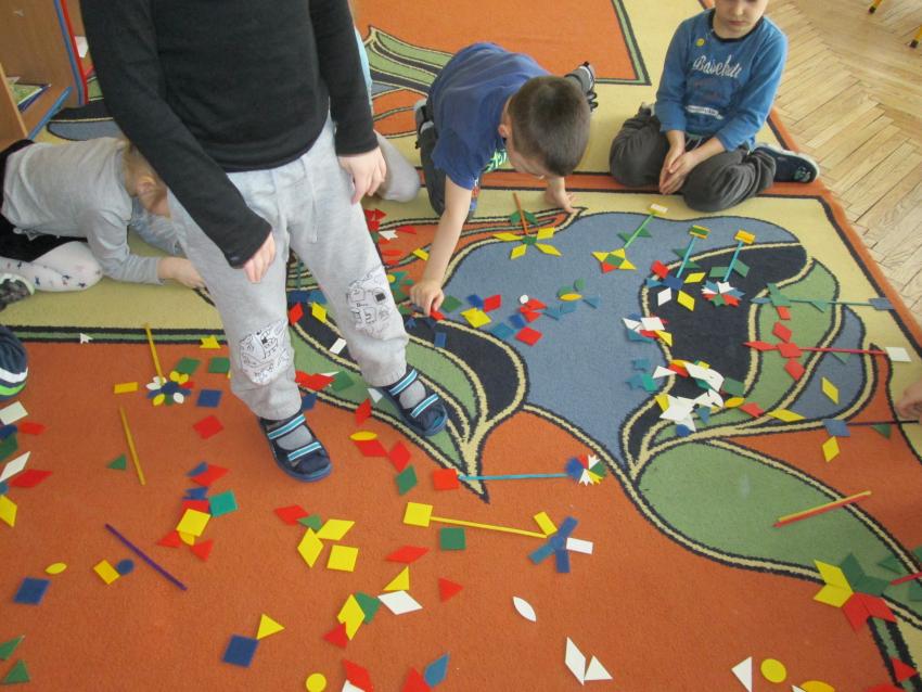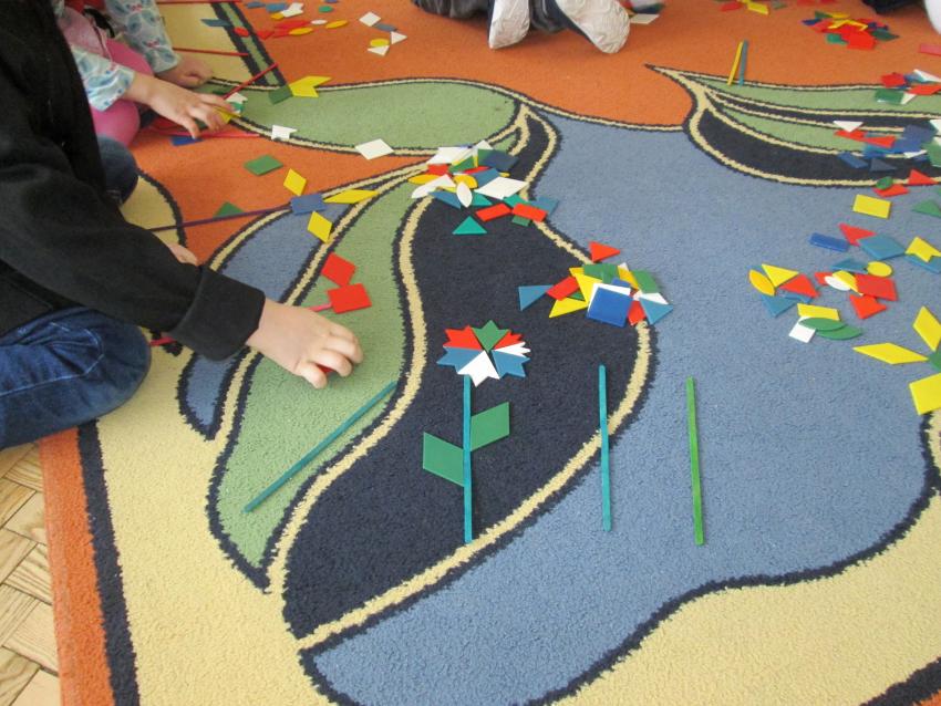 ZACZAROWANE PACYNKI UKŁADAJĄ KWIATY Z FIGUR GEOMETRYCZNYCH