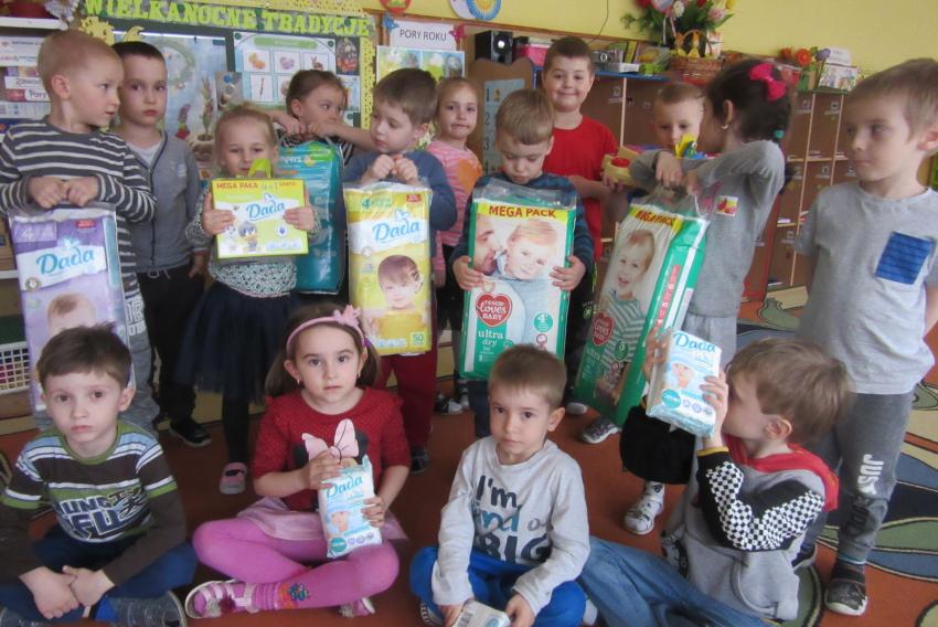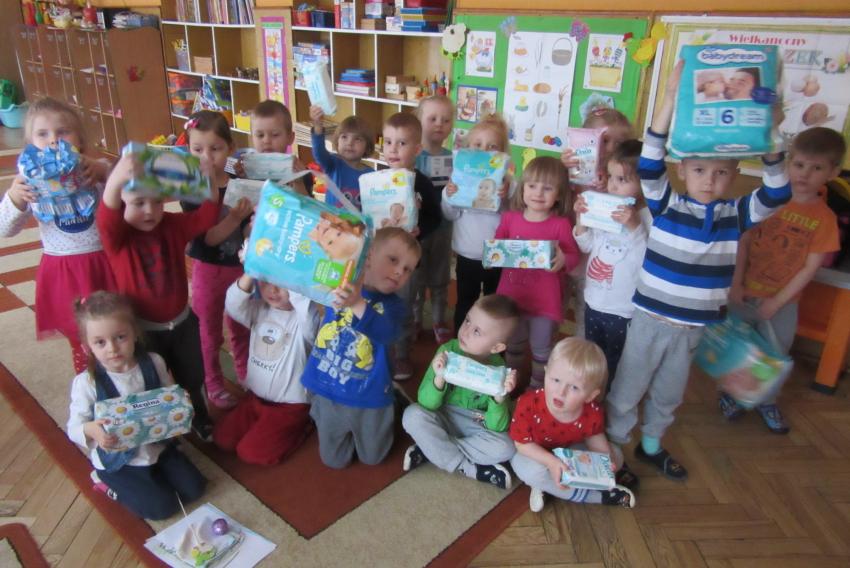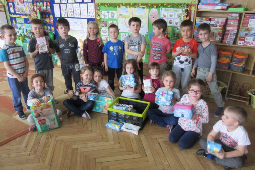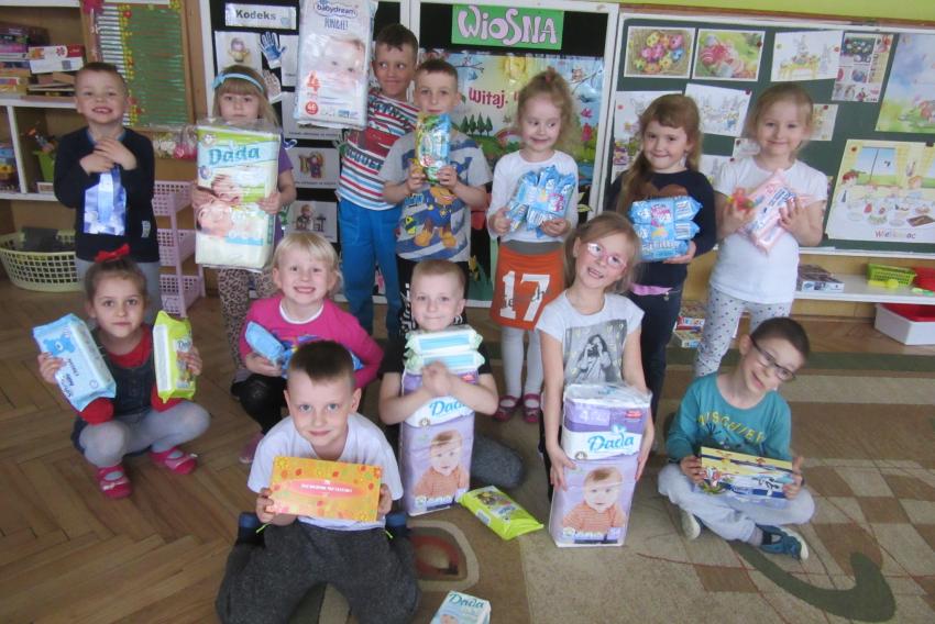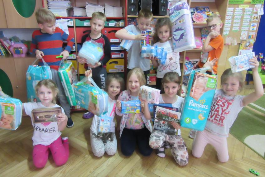 PRZEKAZANIE PREZENTÓW ZEBRANYCH DLA CHOREGO DZIECKA PRZEZ MAŁYCH WOLONTARIUSZY