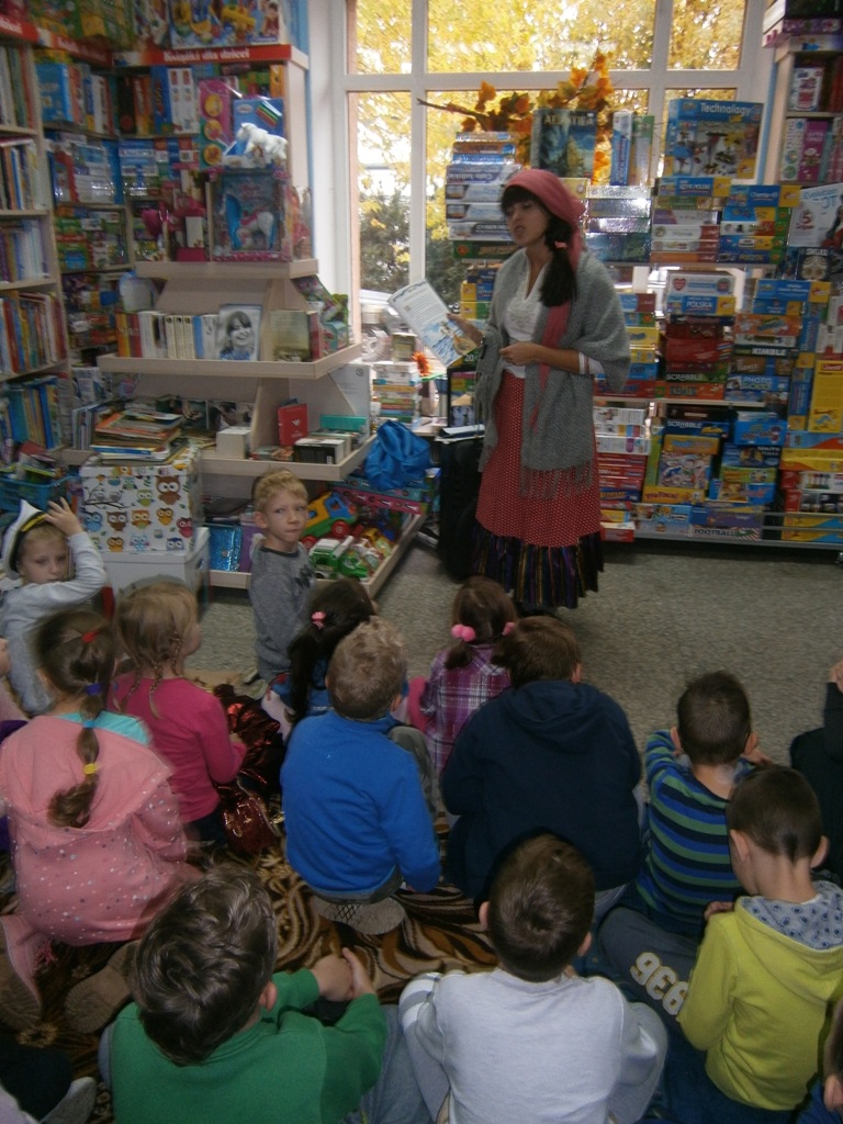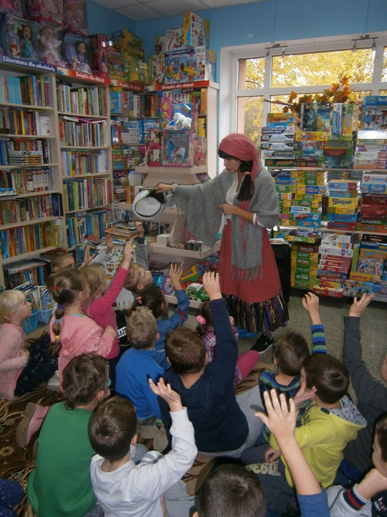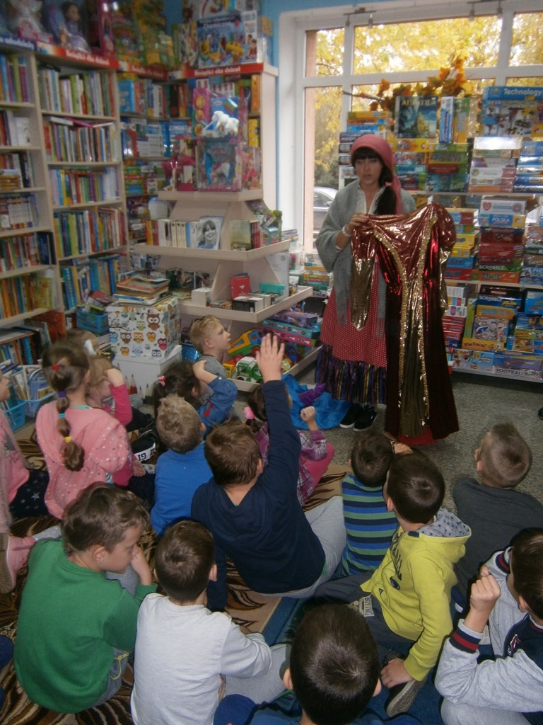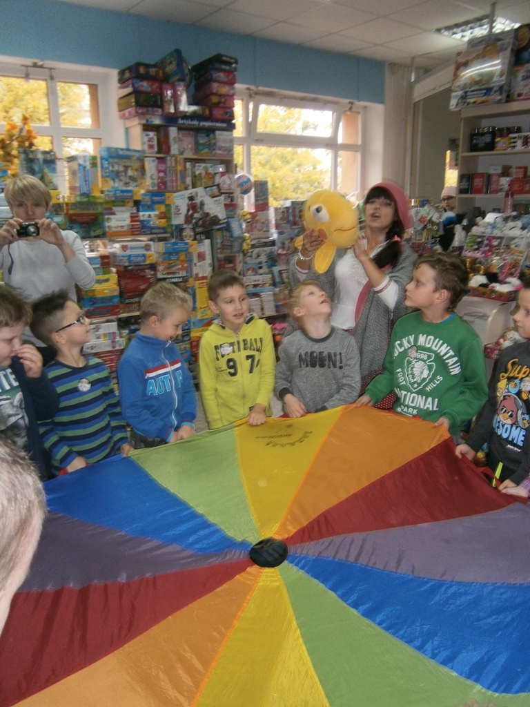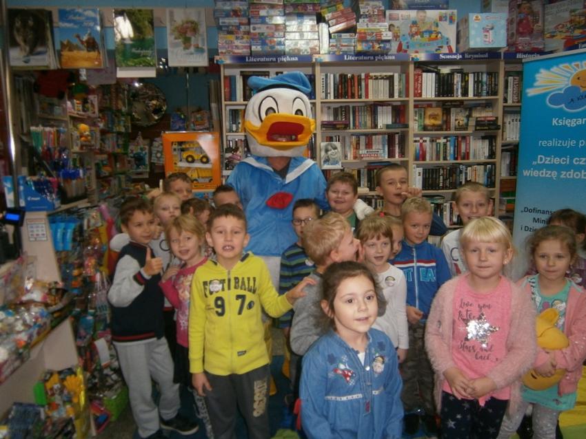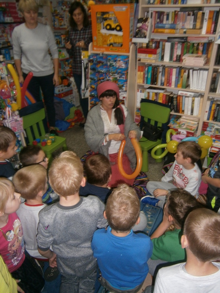 W dniu 16.10.2017 przedszkolaki z grupy „Kolorowe akwarelki” wybrały się do księgarni A KUKU. Odbyło się tam bardzo ciekawe spotkanie z Animatorką, która zabrała nas w świat bajki „O rybaku i złotej rybce”. Wzięliśmy udział w zabawach edukacyjnych, robiliśmy rybki z balonów a także spróbowaliśmy pysznej waty cukrowej. Spotkaliśmy też prawdziwą postać z bajki- Kaczora Donalda.