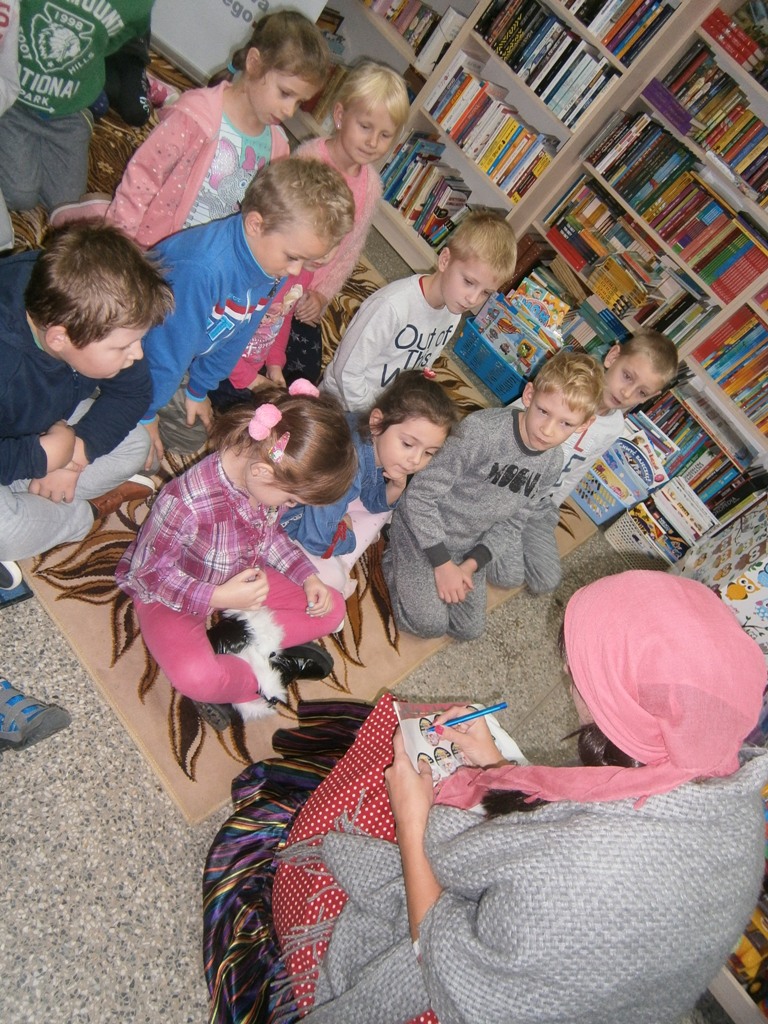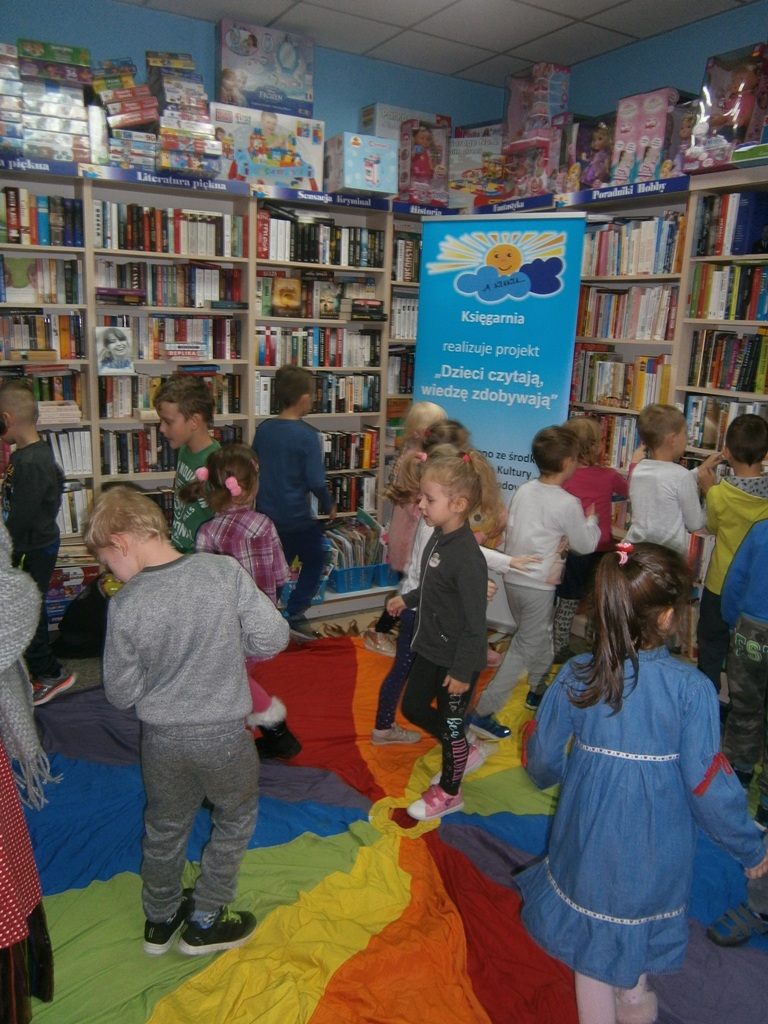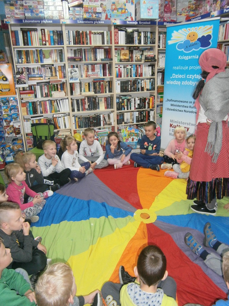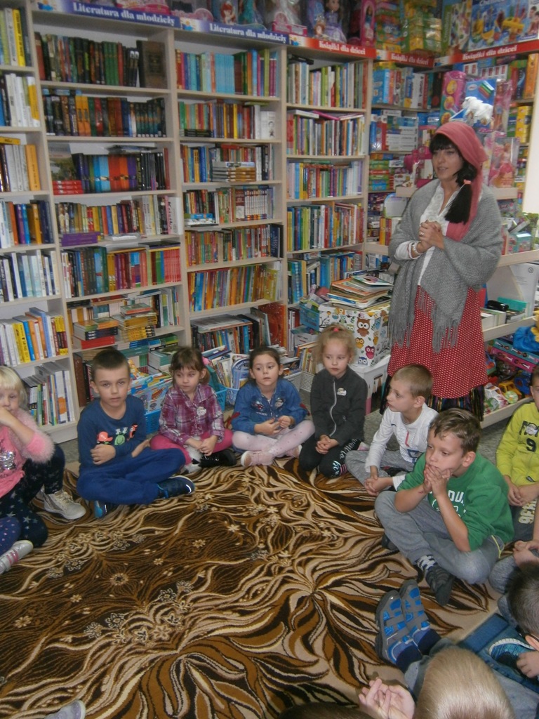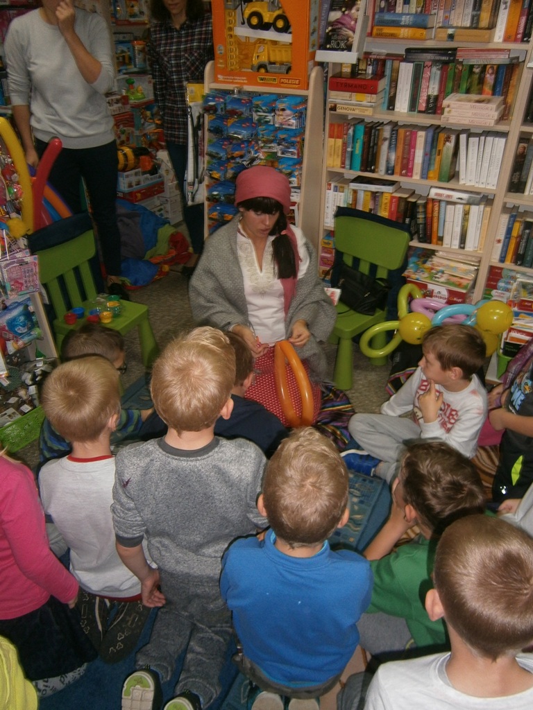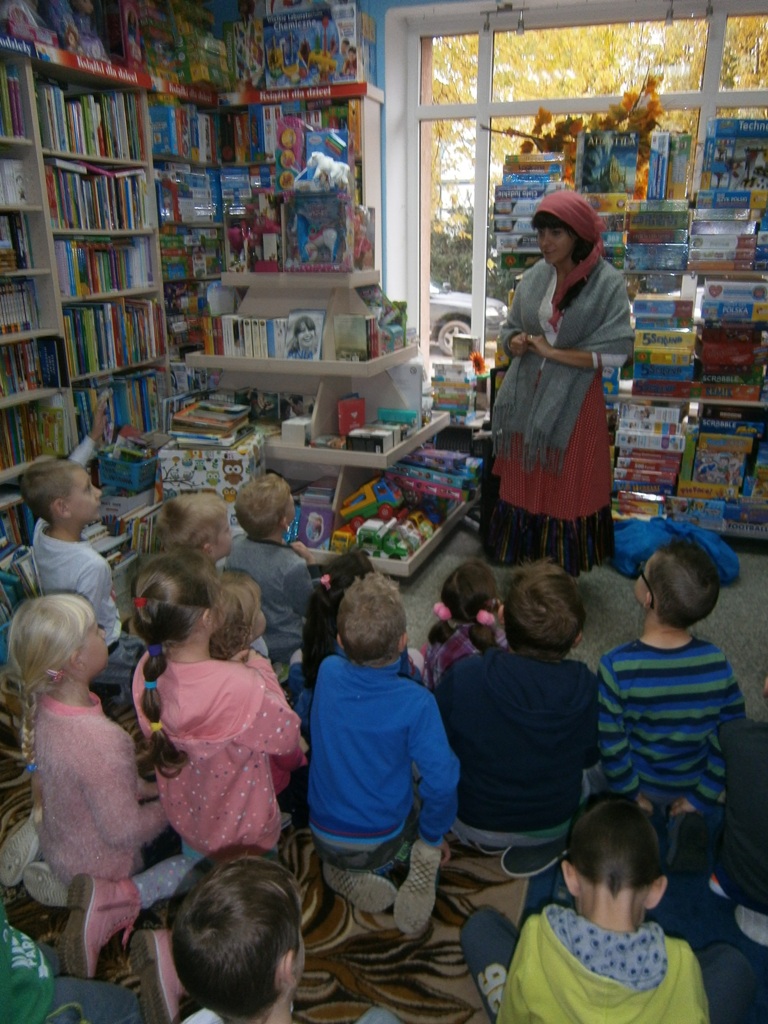 W dniu 16.10.2017 przedszkolaki z grupy „Kolorowe akwarelki” wybrały się do księgarni A KUKU. Odbyło się tam bardzo ciekawe spotkanie z Animatorką, która zabrała nas w świat bajki „O rybaku i złotej rybce”. Wzięliśmy udział w zabawach edukacyjnych, robiliśmy rybki z balonów a także spróbowaliśmy pysznej waty cukrowej. Spotkaliśmy też prawdziwą postać z bajki- Kaczora Donalda.
