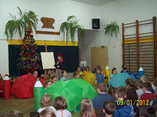 NASZE PRZEDSZKOLAKI UCZESTNICZĄ W PRZEDSTAWIENIU MUZYCZNO-TANECZNYM W WYKONANIU UCZNIÓW SP NR1
