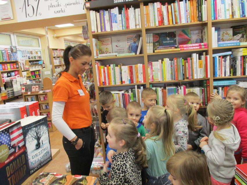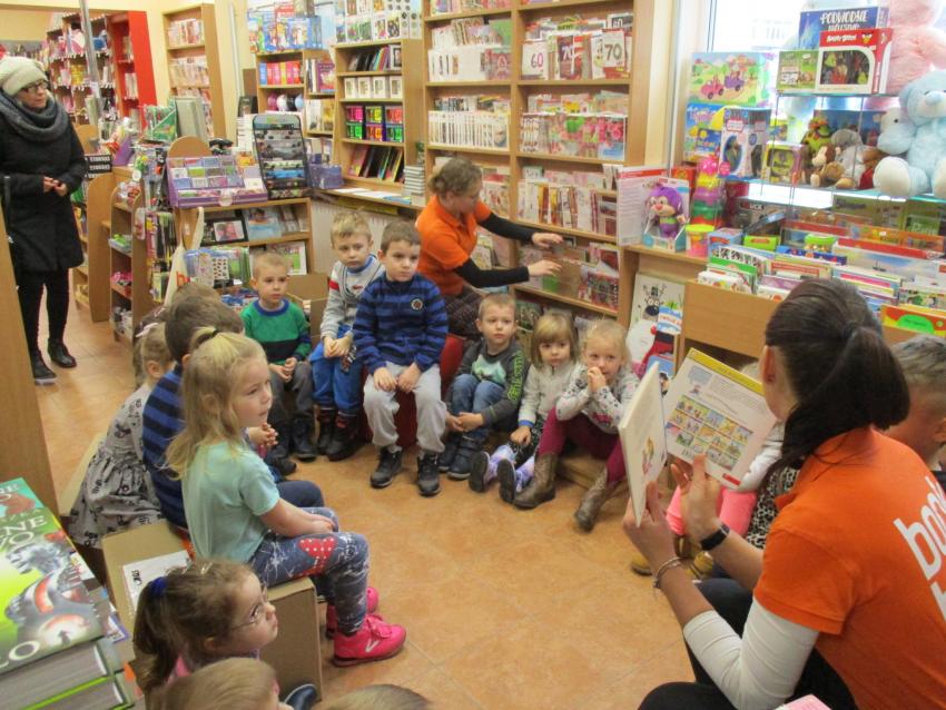 W dniu 15 listopada przedszkolaki z grupy Zaczarowane Pacynki wybrały się na wycieczkę do Księgarni „BookBook”. Wycieczka związana była z tematem obowiązującym w danym tygodniu, czyli książkami. Dzieci miały możliwość, zapoznania się z asortymentem zgromadzonych tam książek i innych towarów. Pani Kasia Cydzik przeczytała przedszkolakom bajkę o Zuzi i jej wizycie u lekarza. Serdecznie dziękujemy mamie Kuby za miłe przyjęcie i prezenty w postaci książeczek.