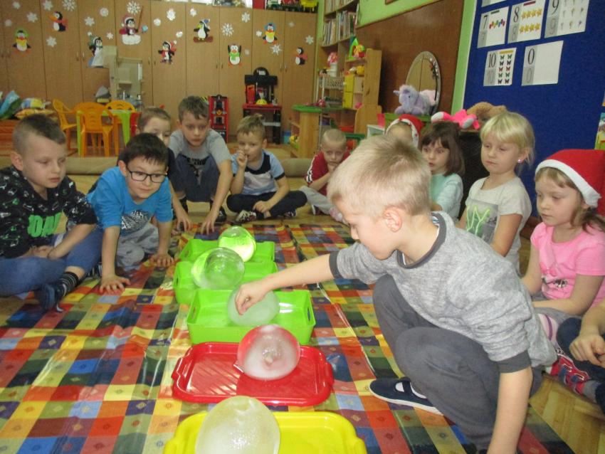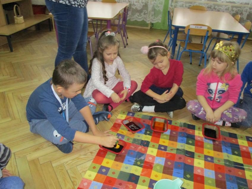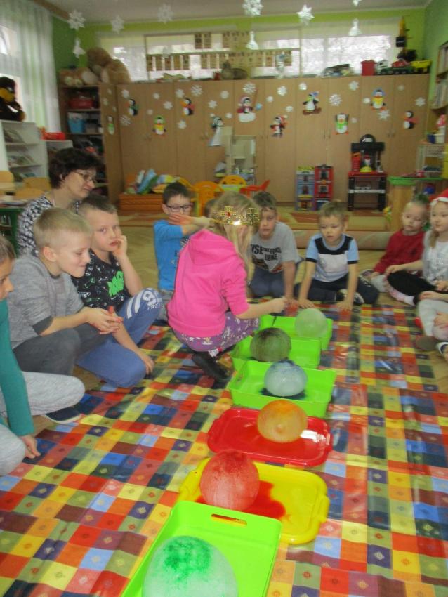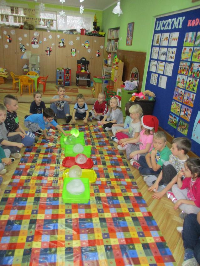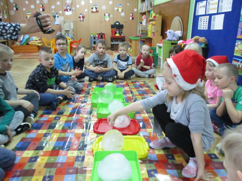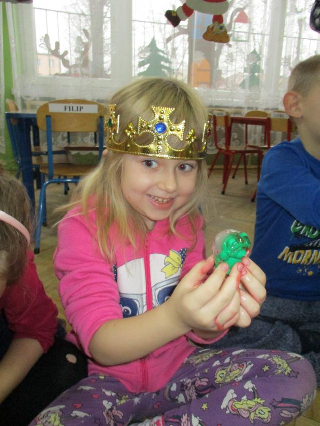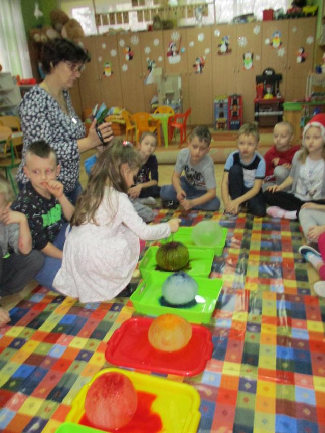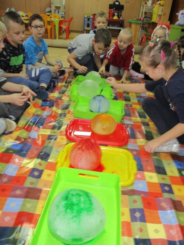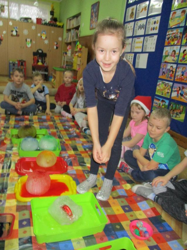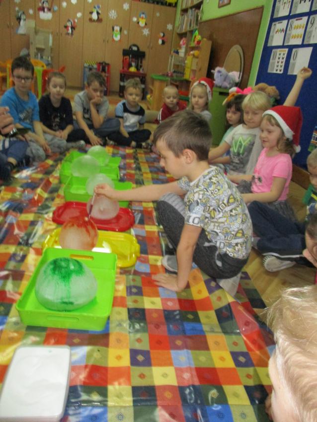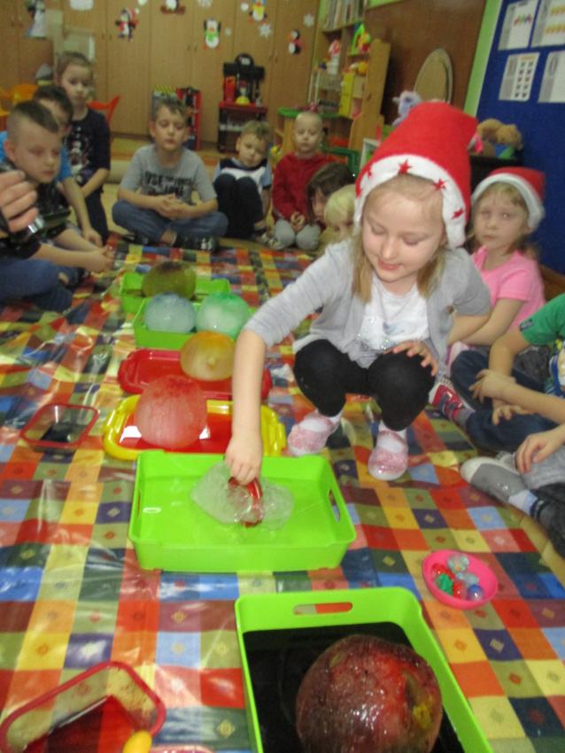 „Kolorowe akwarelki” w ramach programu czytelniczego „Przedszkolaki bajki znają i bardzo je uwielbiają” zapoznały się z baśnią pt. „Królowa Śniegu”. Oprócz poznania treści zorganizowaliśmy zabawy tematyczne oraz doświadczenia z lodem, uwolniliśmy zamrożone serduszko, sprawdzaliśmy co się stanie z kulami lodowymi po zastosowaniu soli itp.