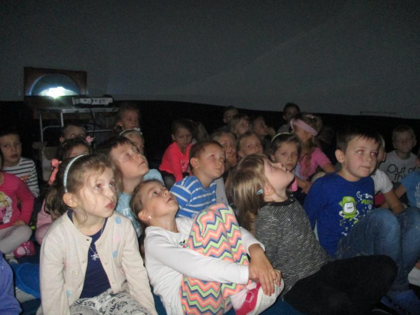 W dniu 25.09.2017 w Przedszkolu Nr 1 dzieci z grup „Kolorowe akwarelki” i „Tęczowe kredki” miały okazję skorzystać z niesamowitej atrakcji. Do placówki przyjechało KINO SFERYCZNE, które jest postrzegane jako nowa forma kształcenia. Za pomocą systemu sferycznej projekcji w środku kopuły tworzy się niesamowity, panoramiczny obraz. Zaciekawione przedszkolaki weszły do środka ogromnej, rozstawionej w sali półkuli i z ogromnym zainteresowaniem obejrzały pokazy filmów edukacyjnych.