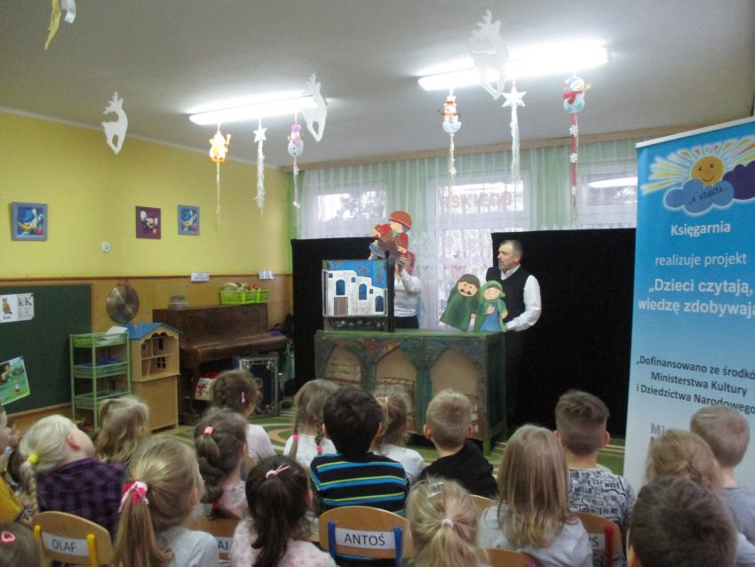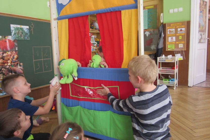 W dniu 08.11.2017 r. przedszkolaki miały okazję obejrzeć ciekawy teatrzyk pt. „Wyspa pacynek” w wykonaniu grupy artystycznej POD ORZEŁKIEM. Atrakcja była zrealizowana w ramach projektu „Dzieci czytają, wiedzę zdobywają”.