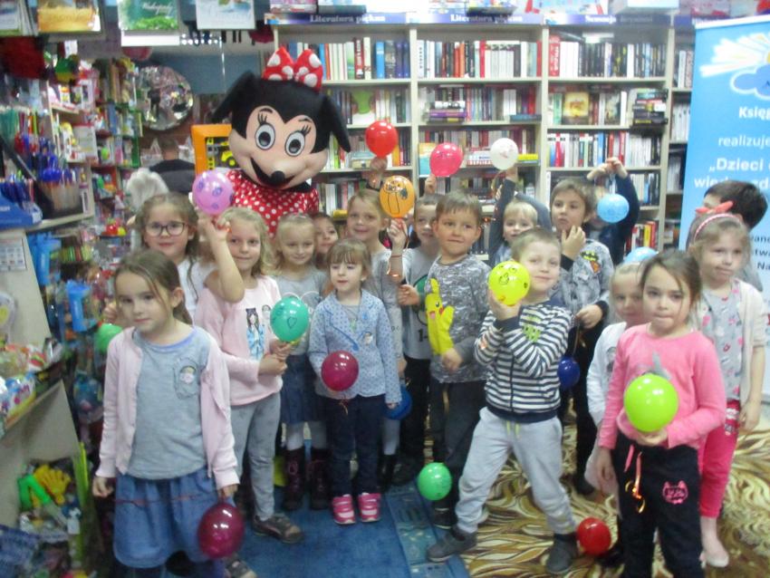 W dniu 16.10.2017 przedszkolaki z grupy „Kolorowe akwarelki” wybrały się do księgarni A KUKU. Odbyło się tam bardzo ciekawe spotkanie z Animatorką, która zabrała nas w świat bajki „O rybaku i złotej rybce”. Wzięliśmy udział w zabawach edukacyjnych, robiliśmy rybki z balonów a także spróbowaliśmy pysznej waty cukrowej. Spotkaliśmy też prawdziwą postać z bajki- Kaczora Donalda.