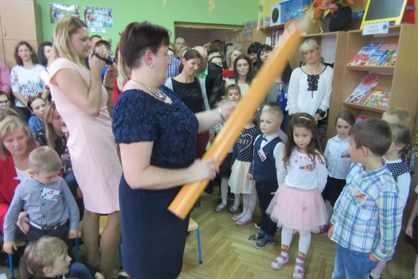 22 września dzieci z grupy „Zaczarowane Pacynki” wyruszyły do Biblioteki Publicznej na spotkanie z pisarką- Krystyną Gudel. W trakcie spotkania autorka zaprezentowała kilka swoich wierszy z książki pt. „Którędy do domu”, zadawała dzieciom zagadki oraz odpowiadała na pytania małych czytelników. Najbardziej spodobało się nam „ołówkowe przedstawienie”, które przygotowała dla nas pisarka. Na koniec mogliśmy obejrzeć kolekcję ołówków, które Pani Krystyna przywiozła z różnych stron świata i zrobić wspólną pamiątkową fotografię.